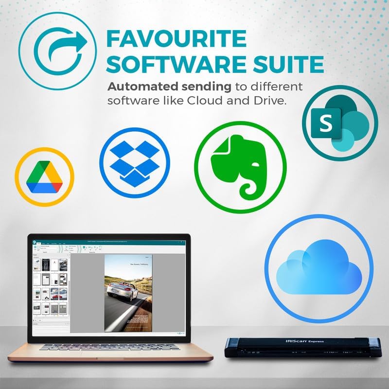 - IRIScan document scanner : Versatile scanning capabilities, including scanning to Word, PDF, and Excel formats with companion software provided Readiris OCR