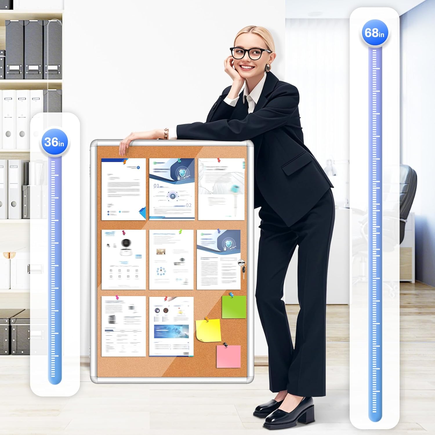 Magula 36"x24" Enclosed Cork Bulletin Board Tamper-Proof Dispaly Case, Aluminium Frame, Shatter Resistant Lockable Bulletin Board, Enclosed Cork Board for School, Office, Commercial, Hospital etc