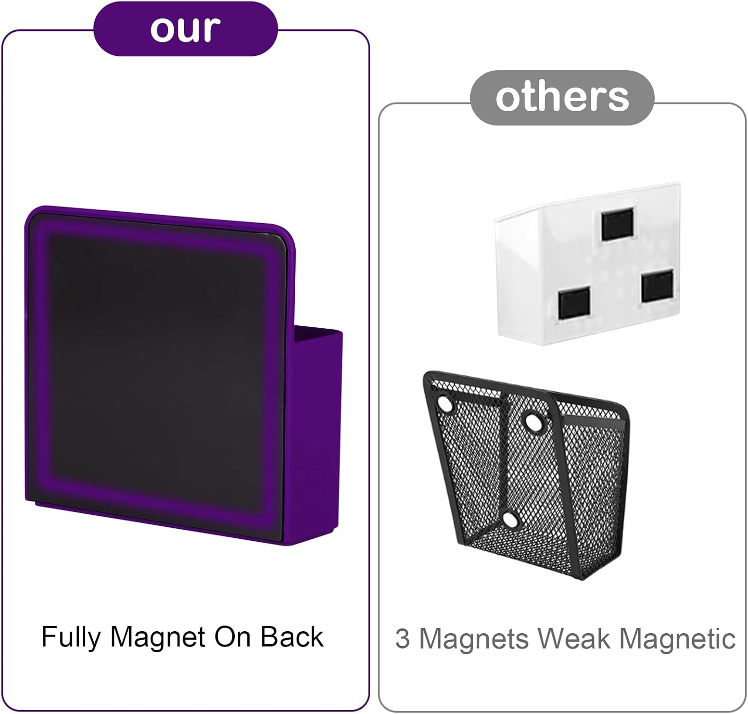 - Upgraded Magnetic Pen Holder:Magnetic marker holder adopts adjustable divider design,There are a movable divider and 3 slots inside. We come with 1 Piece two generous compartments storage holder and 1 Pieces small size holders,you can choose your storage Organizer of different sizes as you like.
