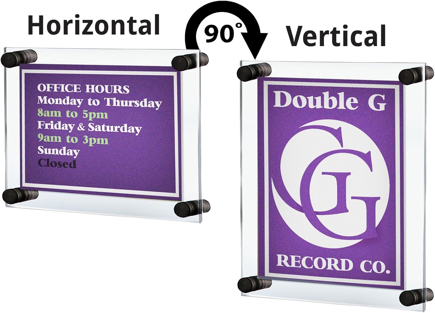 - ✅ HARDWARE INCLUDED - Each floating sign holder frame set includes 2 acrylic panels that are 3/16” thick, 4 standoff caps and hanging hardware. Note: Large format sizes: 24” x 36” and 30” x 40” include 6 standoffs and caps.