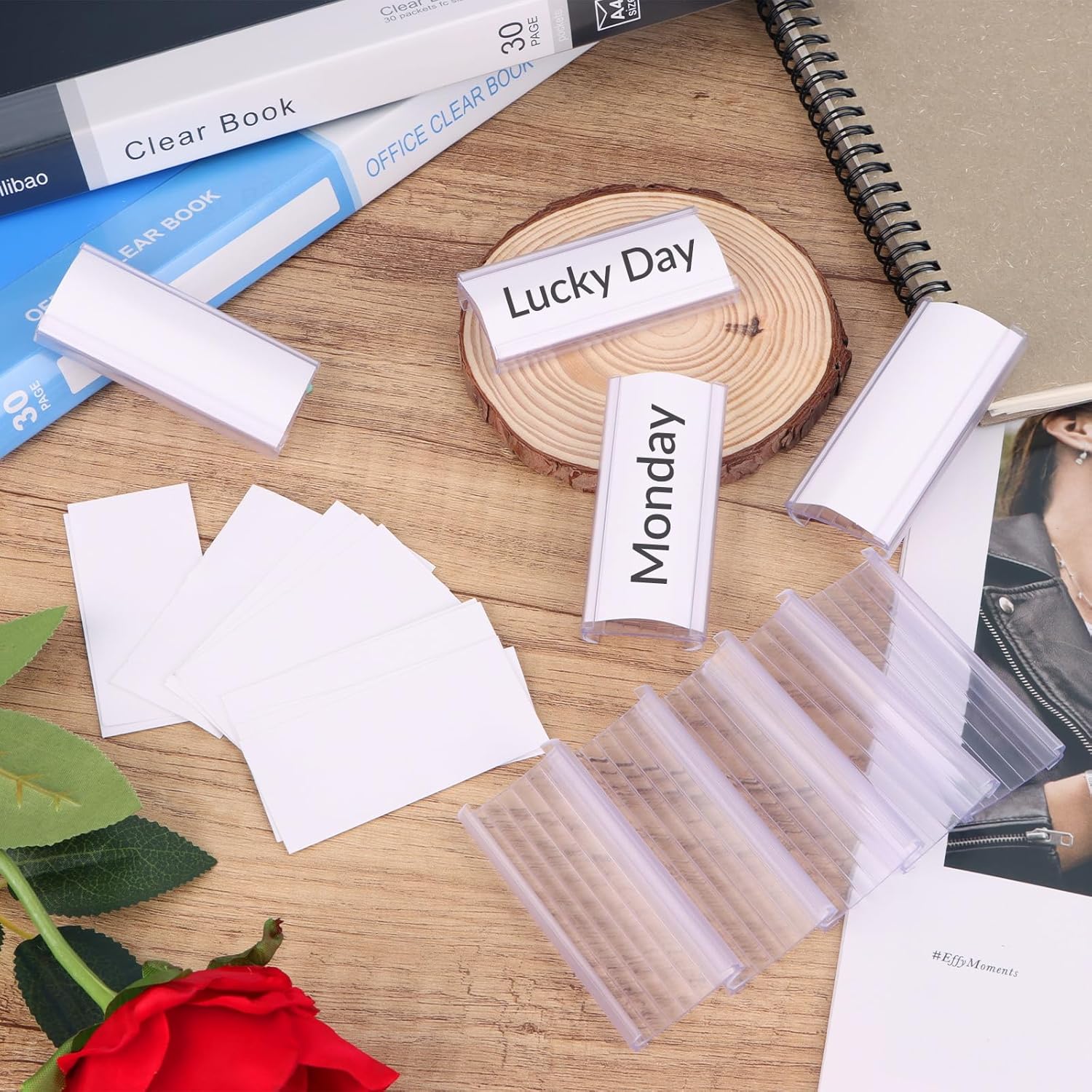 - 【Widly Used Labels】The label holder are widely applicable for organizing bookshelves, metro shelves, kitchen shelves, pantry labels,kitchen labels,bedroom labels,classroom labels, office labels, warehouse labels,supermarket labels. they are can be applied in supermarkets, stores, restaurants, shopping malls and so on.