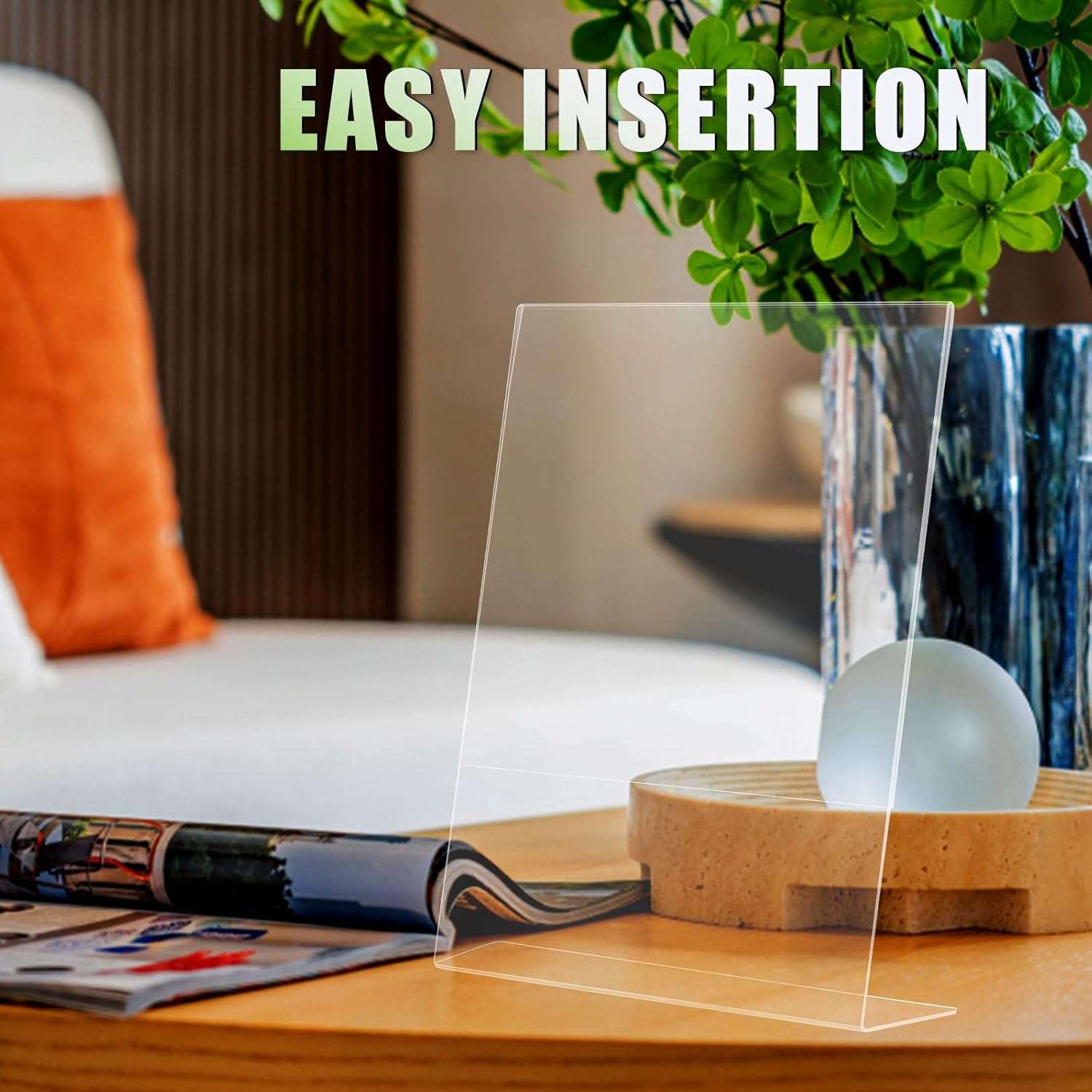 12pack 8.5x11 Acrylic, L Shape Clear Plastic, Menu Holder, Unbreakable Table Sign Holder for Restaurant, Office, School, Store and Home Use