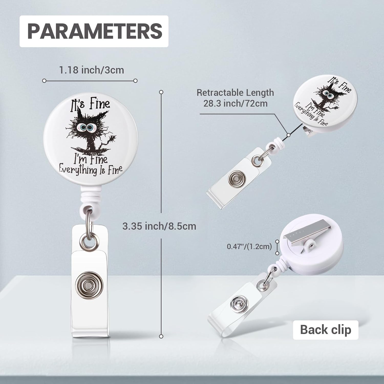 - Badge Holder Specifications: The badge reel has a diameter of 1.18 inches and a retractable length of 24 inches. The sturdy clip will not fall off your badge. This retractable badge reel has a lifetime warranty that covers quality issues and factory workmanship, please contact us anytime.