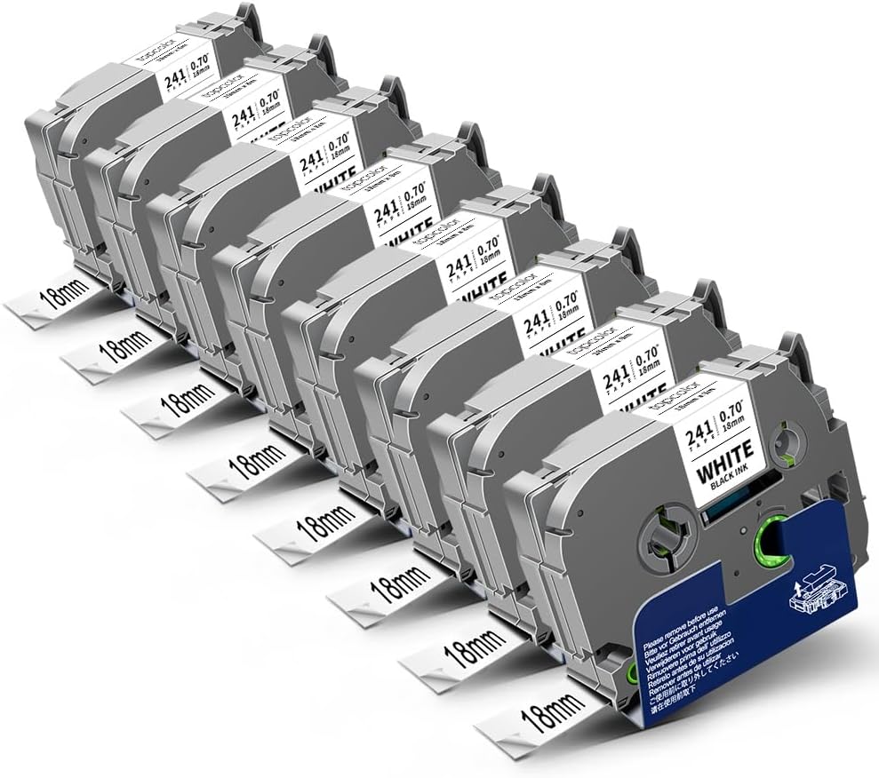 - Package Content: 8-Pack 18mm label maker tape compatible with Brother Tze241 Tze-241 Tz 241 Tz241 Tz-241 3/4" p touch label tze tz tape 18mm 0.7" Laminated White. Size: 3/4 inch (18mm 0.7") x 26.2 feet (8m). Color: Black on White