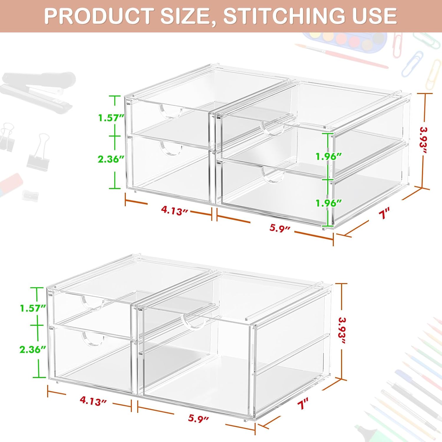 - High-quality Acrylic, Dustproof: This clear drawer storage is dust proof and waterproof, and can protect the items we put away from dust and water. In addition, the desk organizer is made from shatterproof plastic. The sturdy, transparent and fashionable design is compatible with decoration of any rooms. PLEASE DO NOT PUT IN DISHWASHER. Easily clean with soap and warm water.