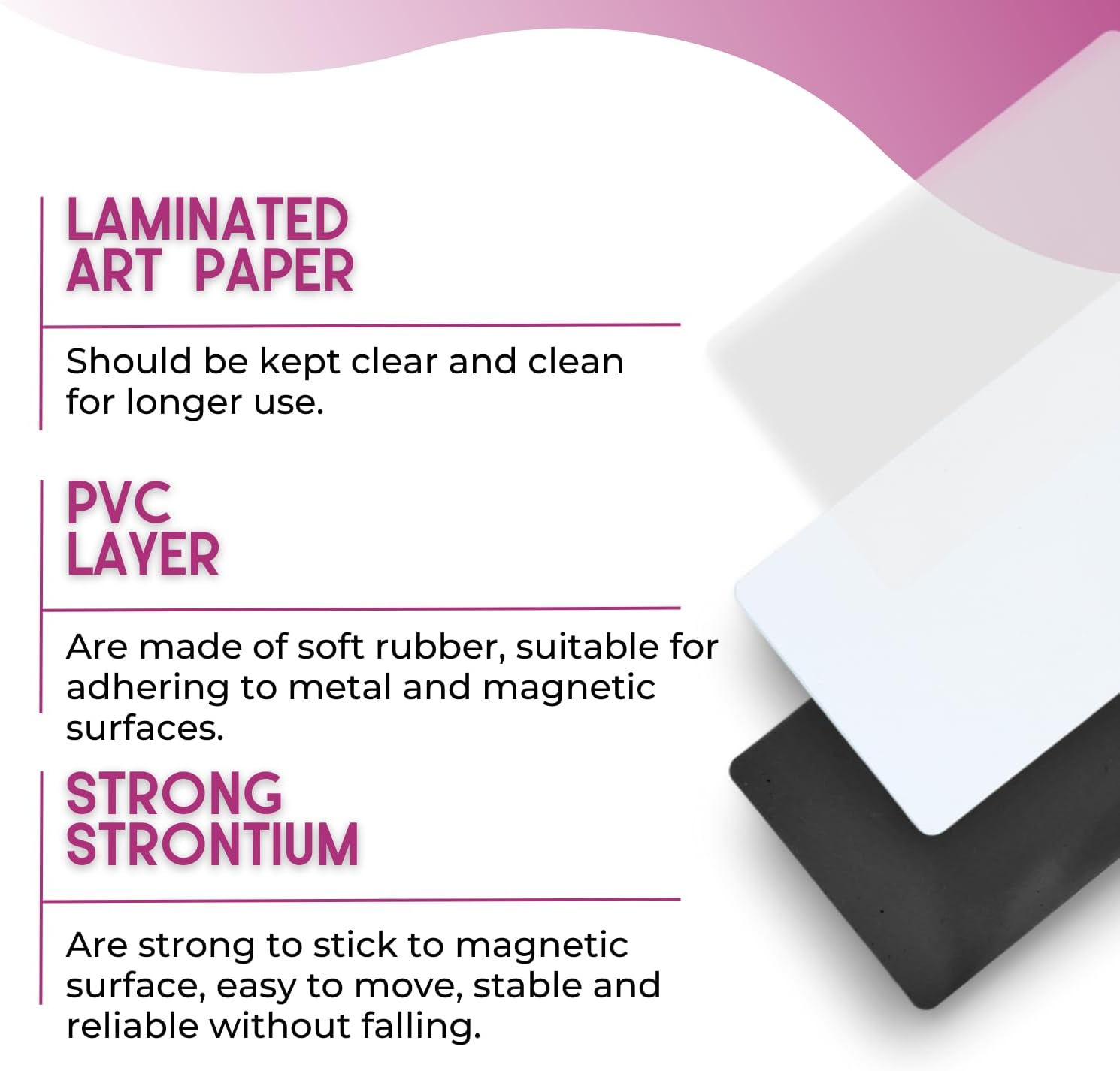 - High-quality Material: The magnetic dry-erase labels have a white writable front, made of laminated art paper, dry-erasable, and a 0.04 inches thickness strontium magnet, on the back for a powerful adhesion to various surfaces; Each label measures 5 x 3 inches;