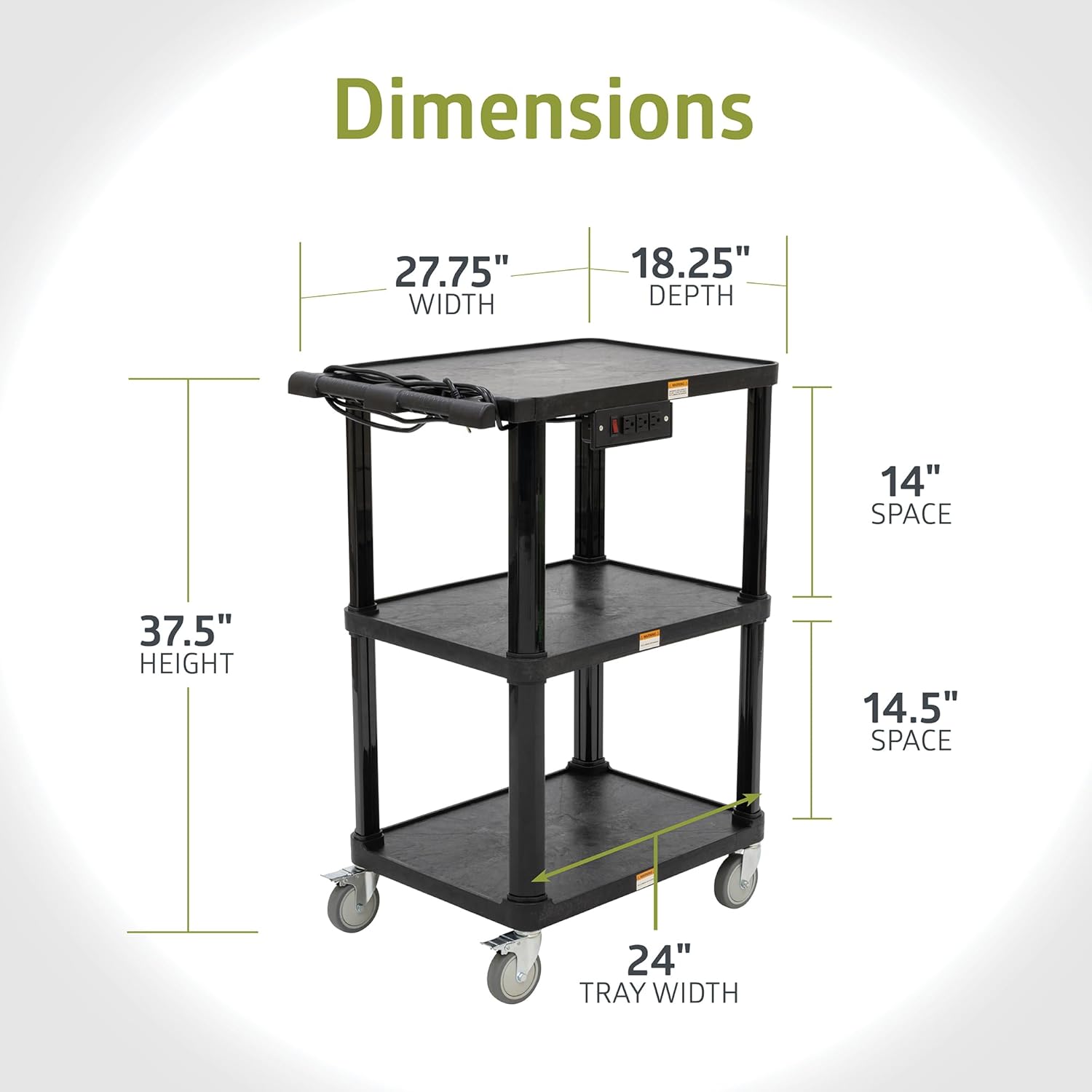 - 3-SHELF UTILITY AV CART: Makes for the perfect side table to hold office supplies or the ideal co-worker for those who need to move boxes around the warehouse or transport food for catering