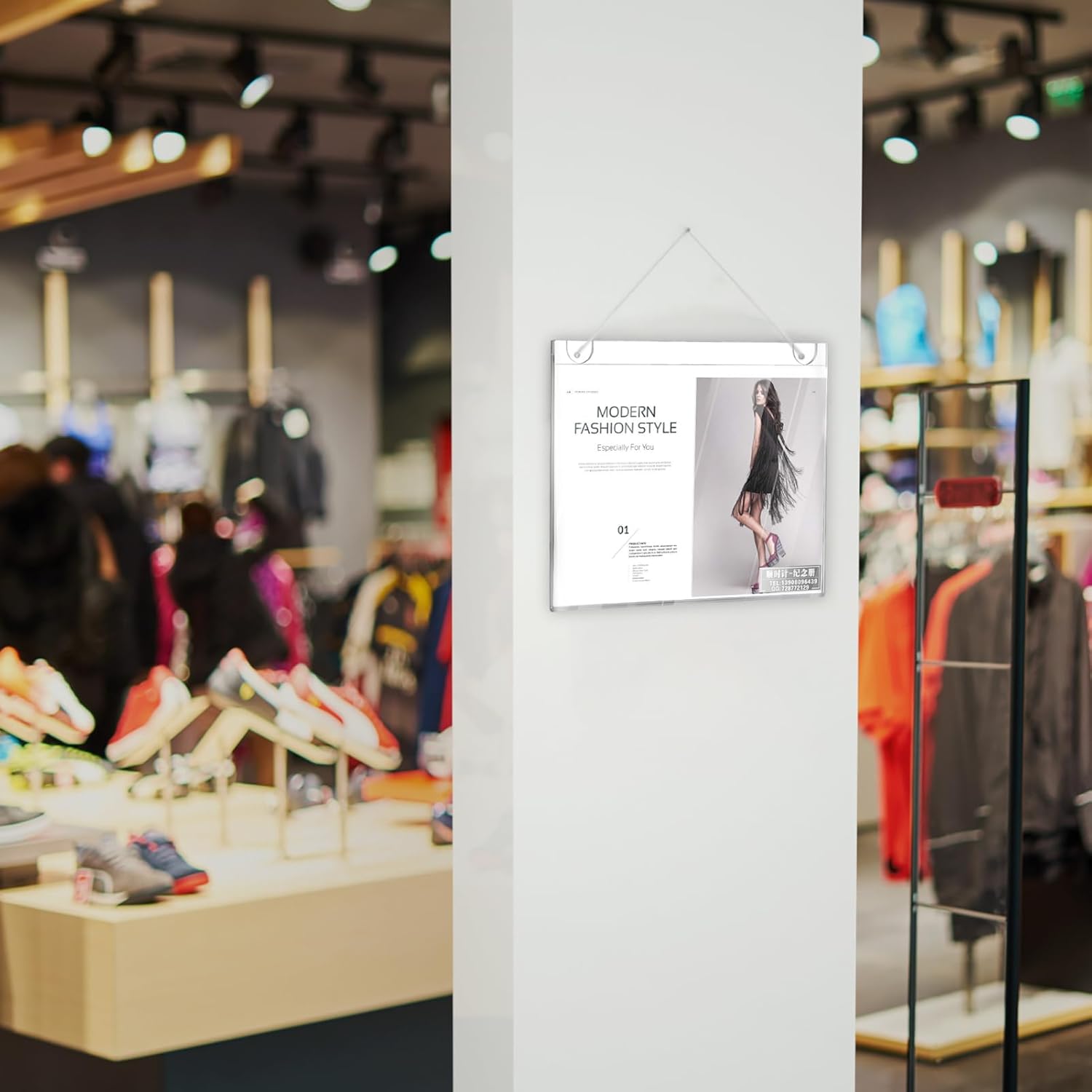 - 🎉【Easy to Use】 Just 1 step was needed to show your favorite picture, poster, images, sign, landscape or AD pamphlets. PecMuikee clear wall mount acrylic sign frame horizontal will increase the transparency and useful life of ads or sign.