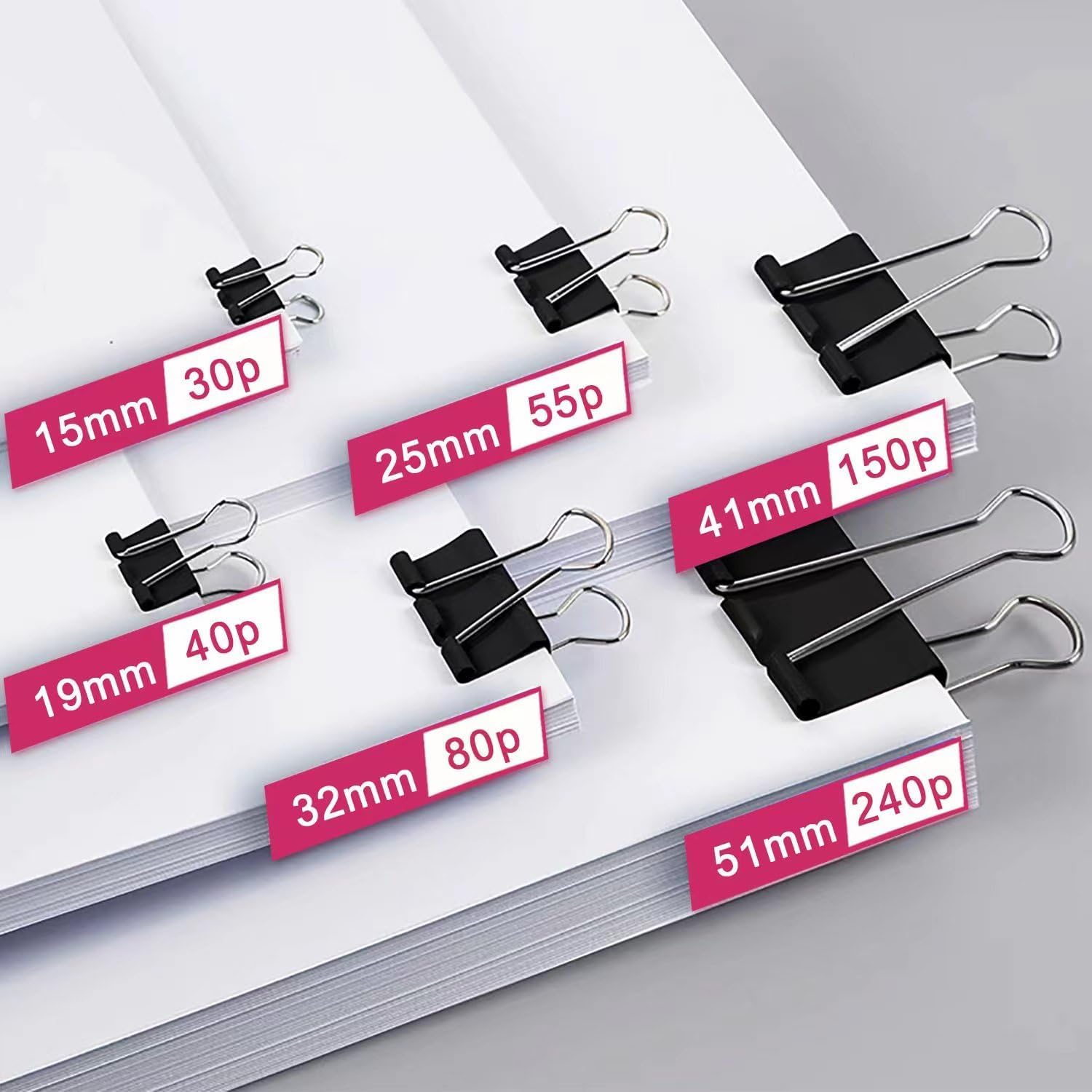 - WHY SHOULD BUY:Elegant black, classic design, super cost-effective paper Binder Clips set, includes different 6 sizes: Extra Large, Large, Medium, Small, X Small and Micro, is your indispensable partner for study,work and life !