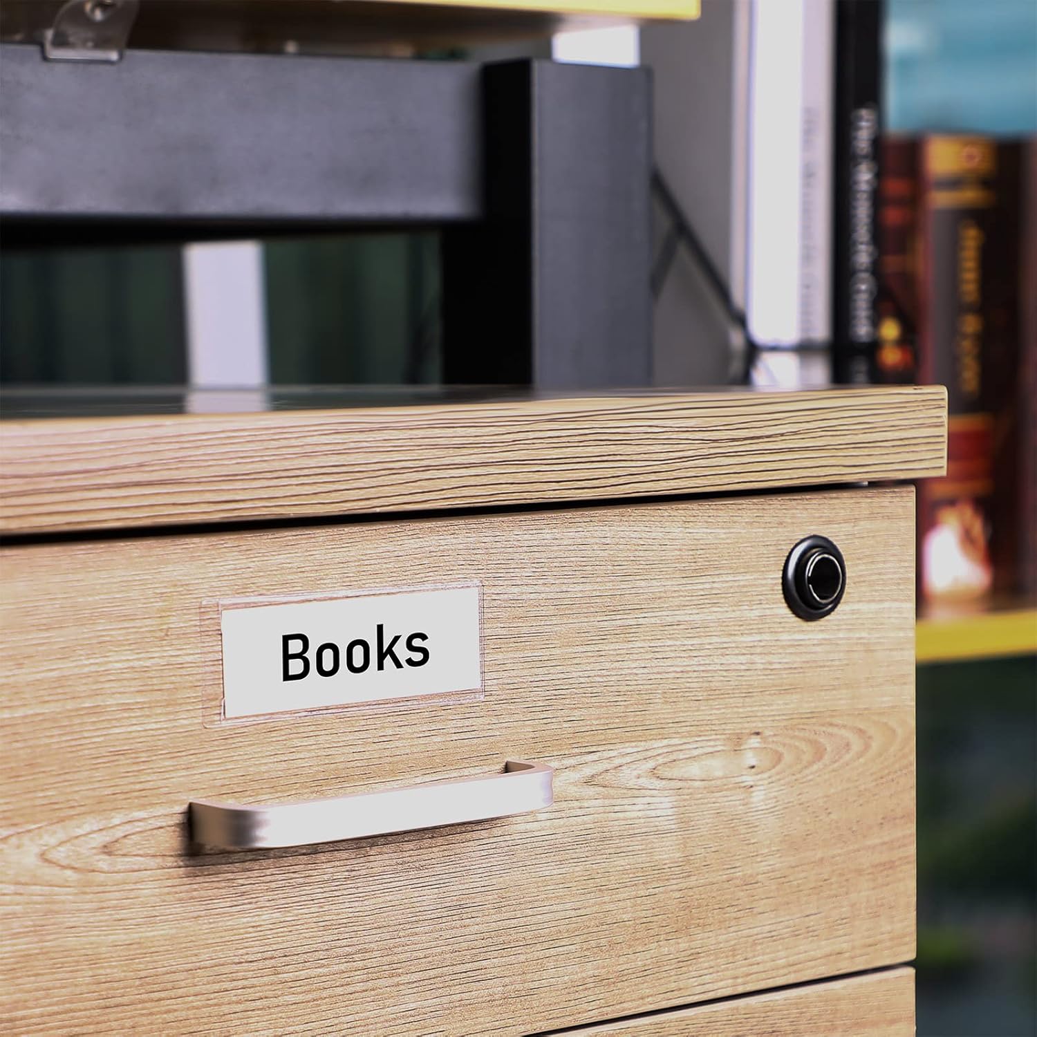 Chinco 50 Pack Clear Adhesive Pockets, Labels for Storage Bins, Plastic Self Adhesive Index Card Holder with Top Open for Organizing Bins Box Drawer(1.2 x 3.35 Inches)