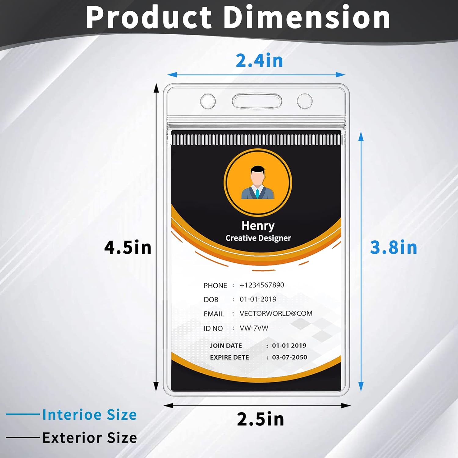 - Value Pack - The package contains 6 pack of badge holders, and the ID badge holder adopts a vertical design, the inner dimension is 2.4"W x 3.8"L, plenty of room inside for easy insertion and removal of cards.