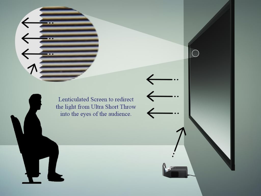 - FLARE UST Ambient light rejecting (ALR) material made specifically for UST projectors. Extemely wide viewing angle and recommeneded for all rooms types. Ultra Short Throw projection only. Material must be oriented towards the projector under the screen. Projector can't be ceiling mounted. Recommended for only for UST (Ultra Short Throw) projectors with 1500 lumens or greater.