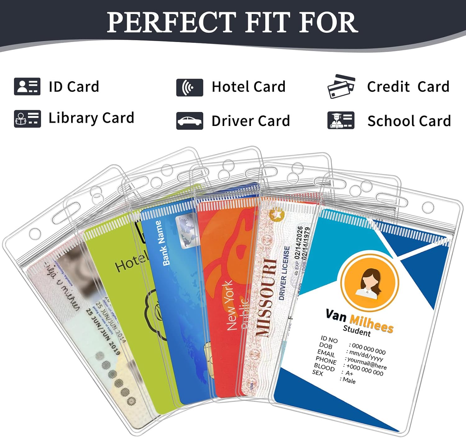- Multiple Usages - Vertical ID badge holders are ideal for wherever need to display a badge like cruises, trips, business meetings, conventions, classes and birthday parties and so on. Perfect for ID cards, work card, student card, nurse name card, credit cards, membership card, exhibition card, bus pass, hotel key cards and cruise cards, etc.