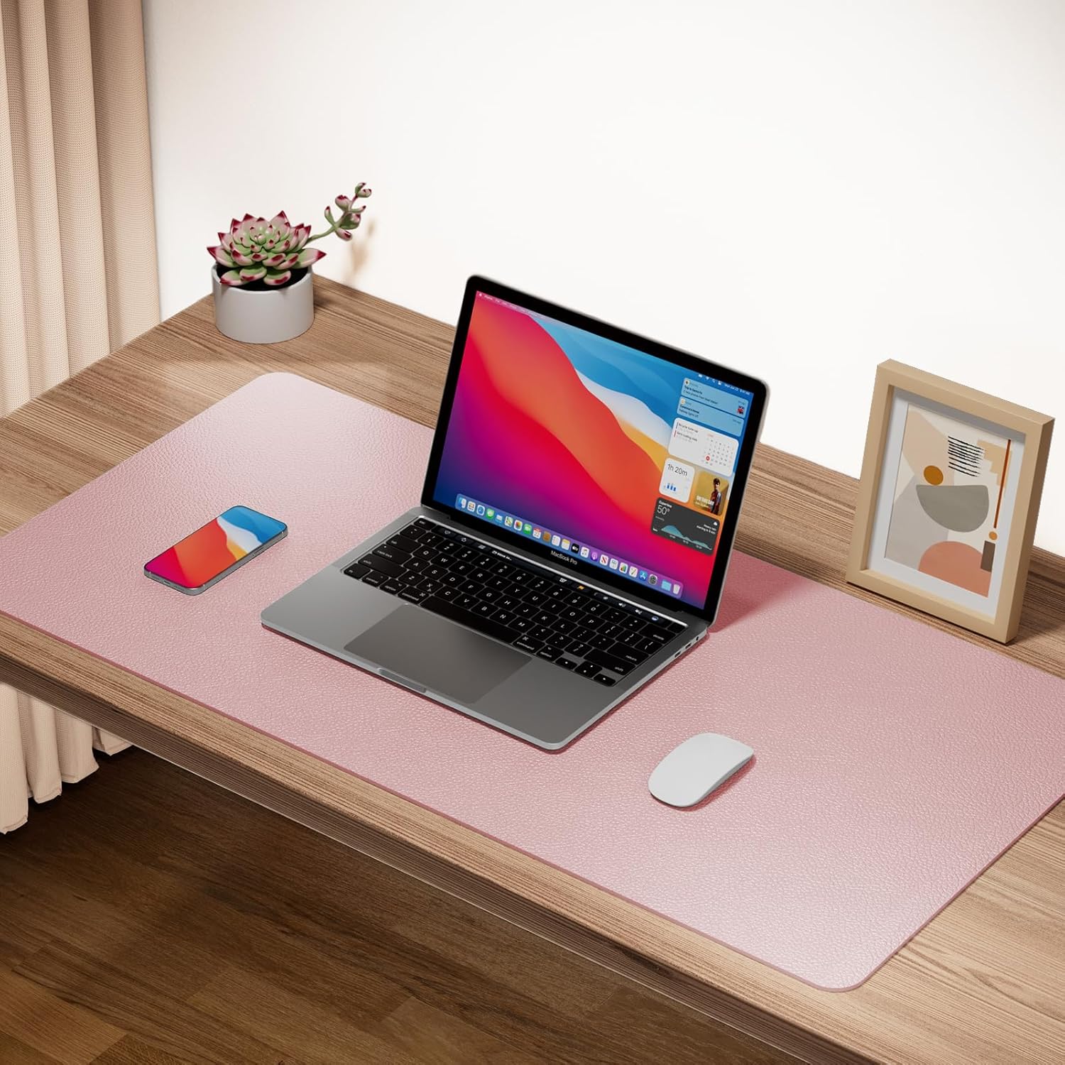 Boutilon Leather Desk Pad Protector,Non-Slip Mouse Pad,Laptop Desk Pad,Office Mouse Mat,Waterproof Leather Desk Blotter,Desk Writing Pad for Office and Home (XXXL-Pink,47"x 24")