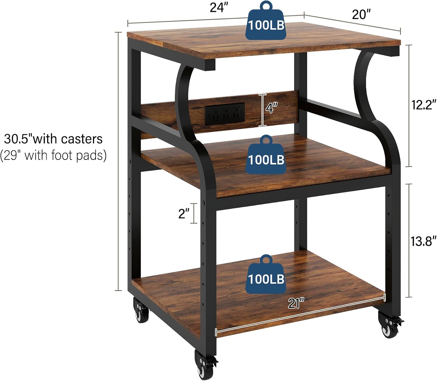 - 【Multifunctional Shelve】With the top table size 24*20inch, this storage organizer shelf is perfect as home office printer stand to hold large laser printers, scanner, copier, 3d printer, and other wire machines. It can also be used in the bedroom, kitchen, and living room to place household items like crucit makers, mini fridge.