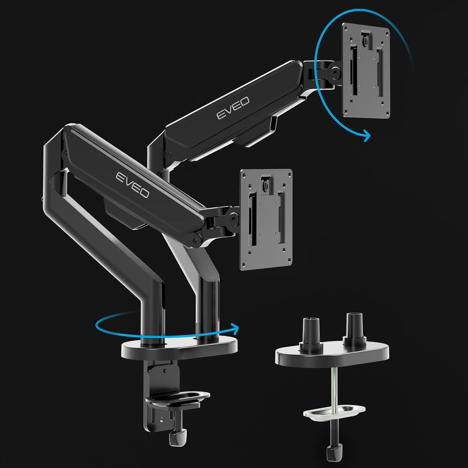 - Flexible Viewing Angles - Our dual monitor mount offers unparalleled flexibility, allowing you to achieve the perfect viewing angle. With 360° rotation and +90° to -90° swivel, this vesa dual monitor mount ensures your monitors are always positioned just right. Adjust your screens with ease for maximum comfort and productivity, making this mount fully adjustable to meet all your workspace needs.
