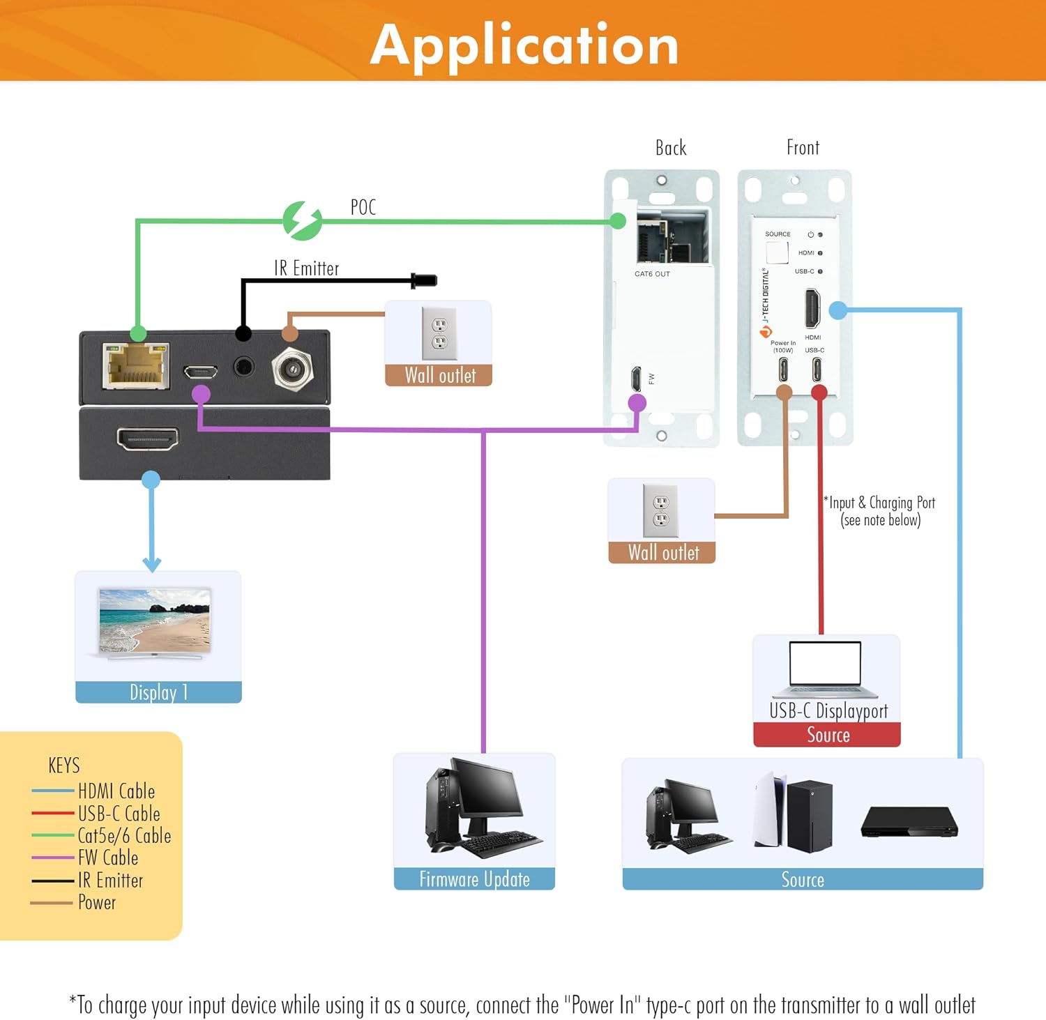 - ๐๐๐๐ / ๐๐๐-๐ ๐๐ง๐ฉ๐ฎ๐ญ๐ฌ & ๐๐๐-๐ ๐๐ก๐๐ซ๐ ๐ข๐ง๐ ๐๐จ๐ซ๐ญ โ Features HDMI and USB-C input ports for flexible device connectivity. The USB-C input port also charges your connected source device so that you donโt have to worry about running out of battery! (Note: To charge your USB-C input device while using it as a source, connect the โPower Inโ USB-C port on the transmitter to a wall outlet).
