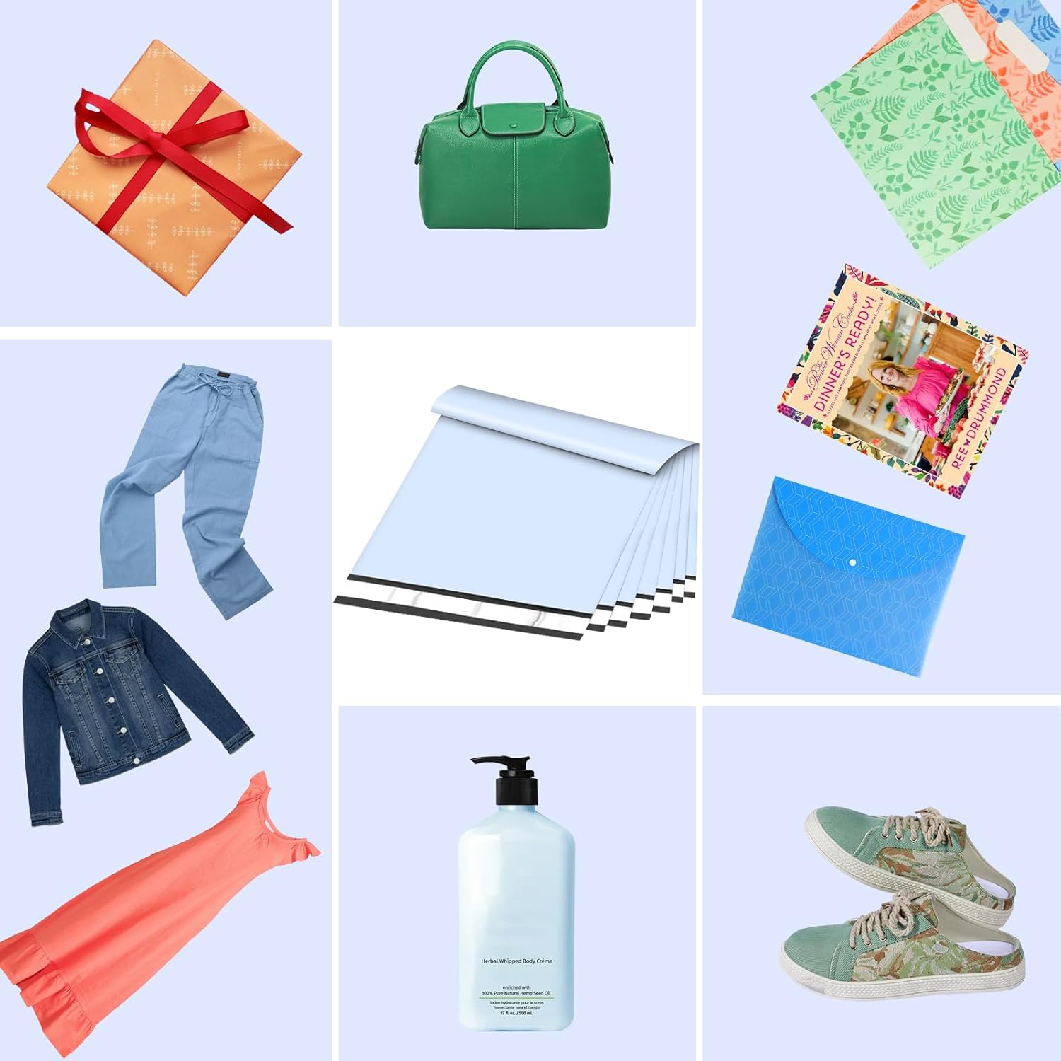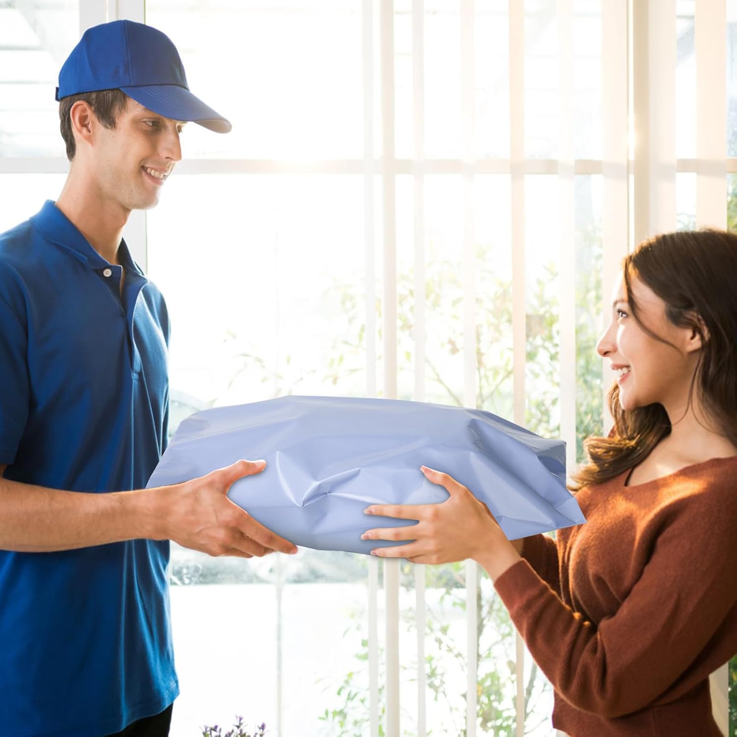 - Eye-Catch Poly Mailers Bags--- Usable size: 14.5x19 Inch, 100Pack. These shipping bags have a light blue outer surface, and gray inner lining, a highly attractive color that makes your products look better. Their smooth texture makes it easy to affix self-adhesive stamps and address labels, helping you customize your brand.