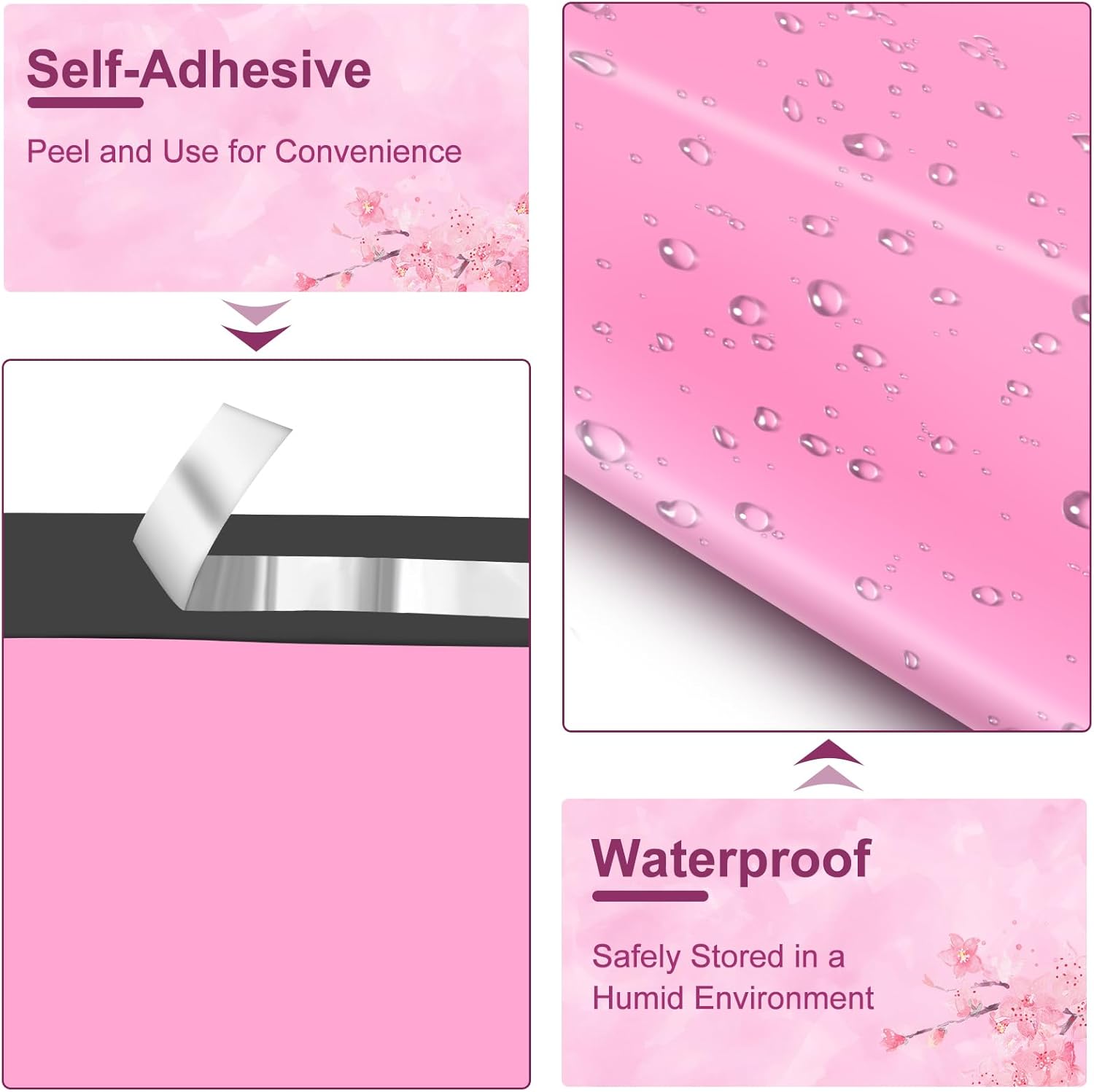 - Eye-Catch Poly Mailers Bags--- Usable size: 24x24 Inch, 50Pack. These large shipping bags have a pink outer surface, and gray inner lining, a highly attractive color that makes your products look better. Their smooth texture makes it easy to affix self-adhesive stamps and address labels, helping you customize your brand.