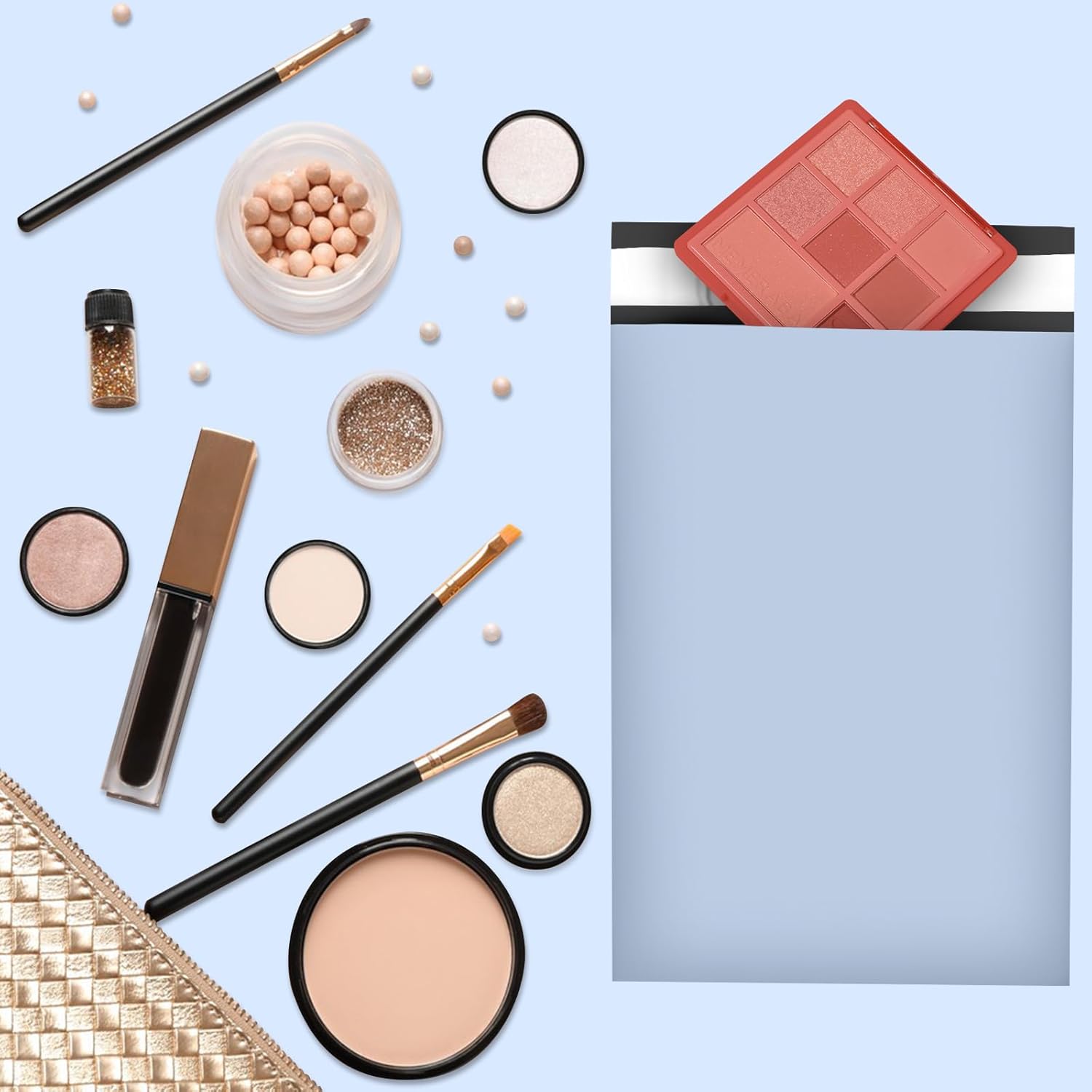 - Eye-Catch Poly Mailers Bags--- Usable size: 6 x 9 Inch, 120Pack. These shipping bags have a light blue outer surface, and gray inner lining, a highly attractive color that makes your products look better. Their smooth texture makes it easy to affix self-adhesive stamps and address labels, helping you customize your brand.