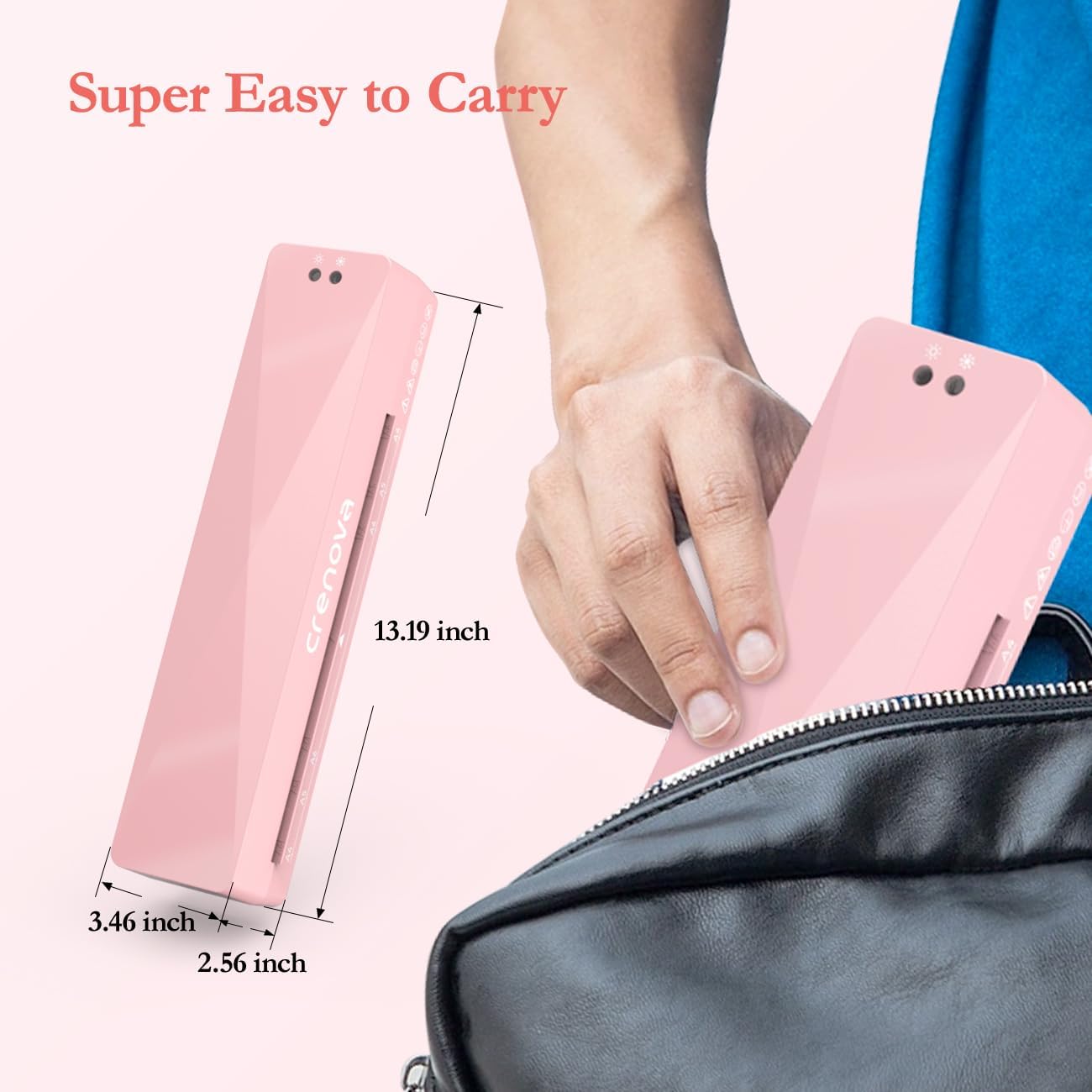 Crenova A4 Laminator Machine 4 in 1 Personal Desktop Hot & Cold with 10 Laminating Pouches No Bubbles 9 Inch Thermal Laminator for Home Office School Business Use Pink