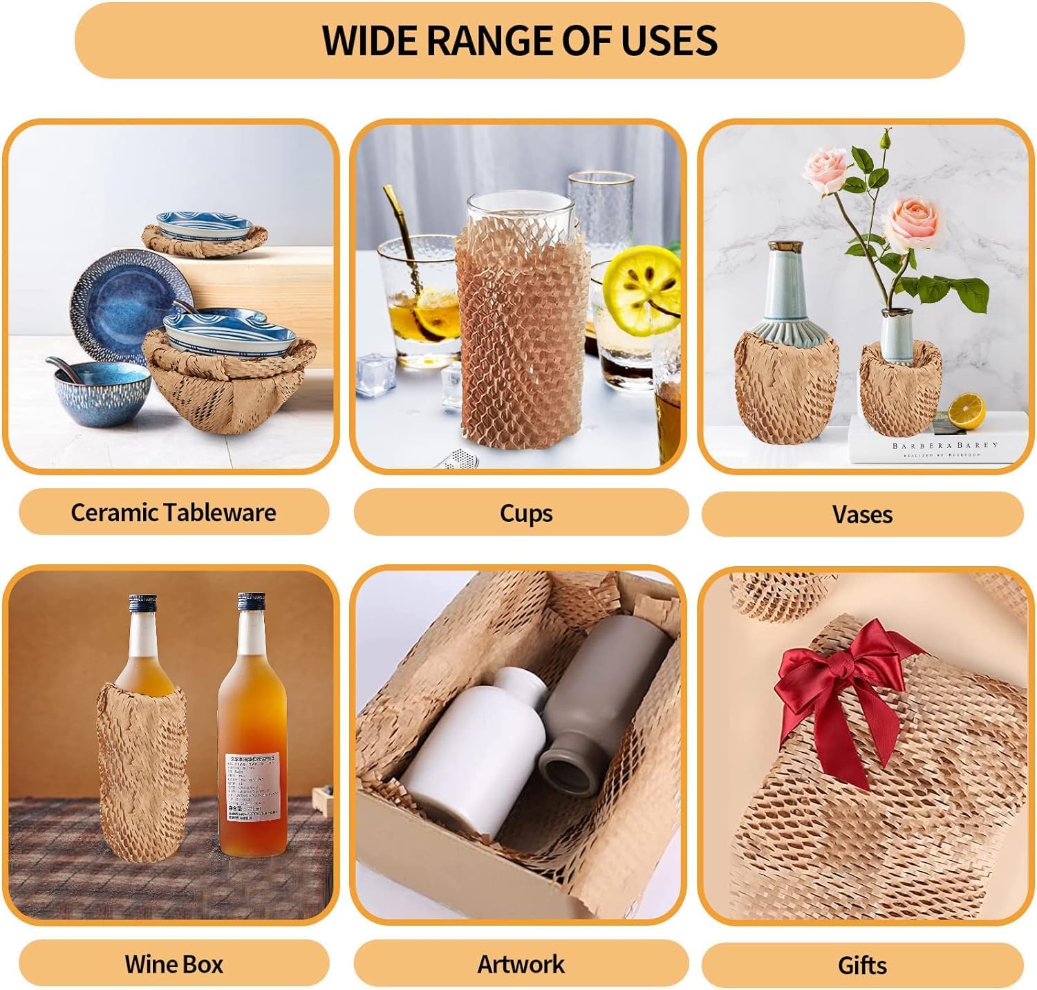 - Environmental Friendly Packing Supplies: Eco friendly 100% biodegradable kraft paper, green alternative to plastic packaging materials .After stretching, the honeycomb structure can increase the cushioning performance and effectively protect the items that need to be wrapped.b packing paper.