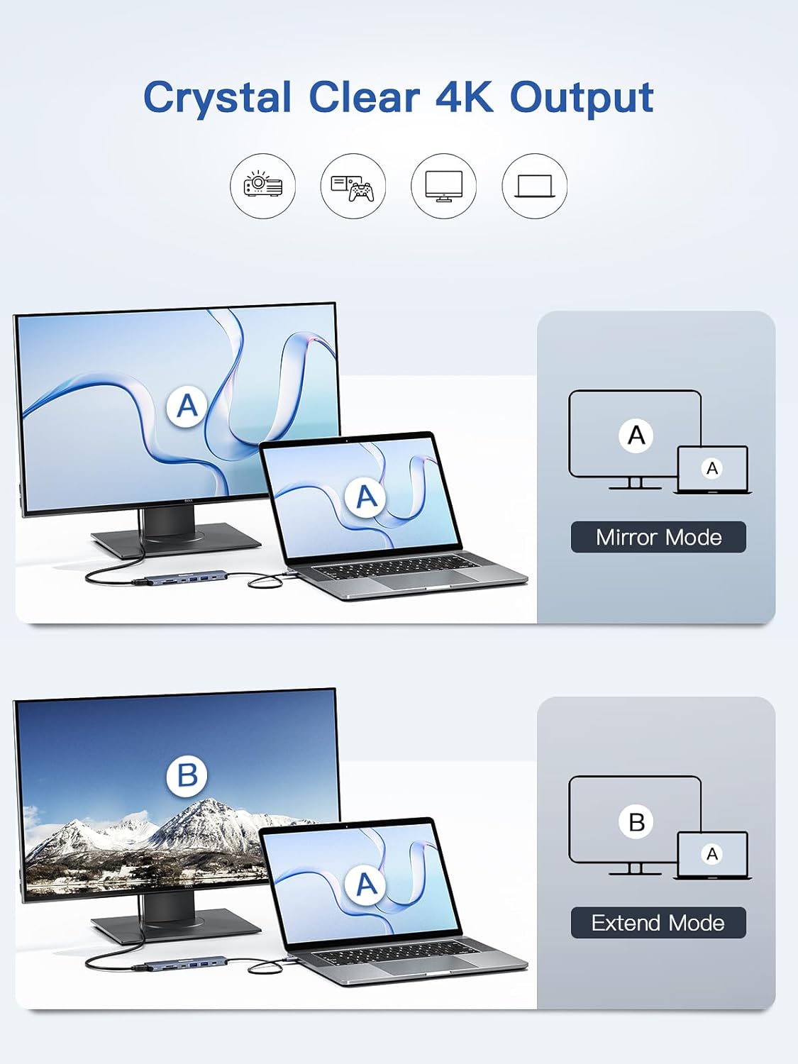 - 4K HD Display: This USB C to HDMI adapter supports mirroring mode or extended mode and transmits 4K@30Hz or Full HD 1080P@60Hz video directly to your HDTV, monitor or projector