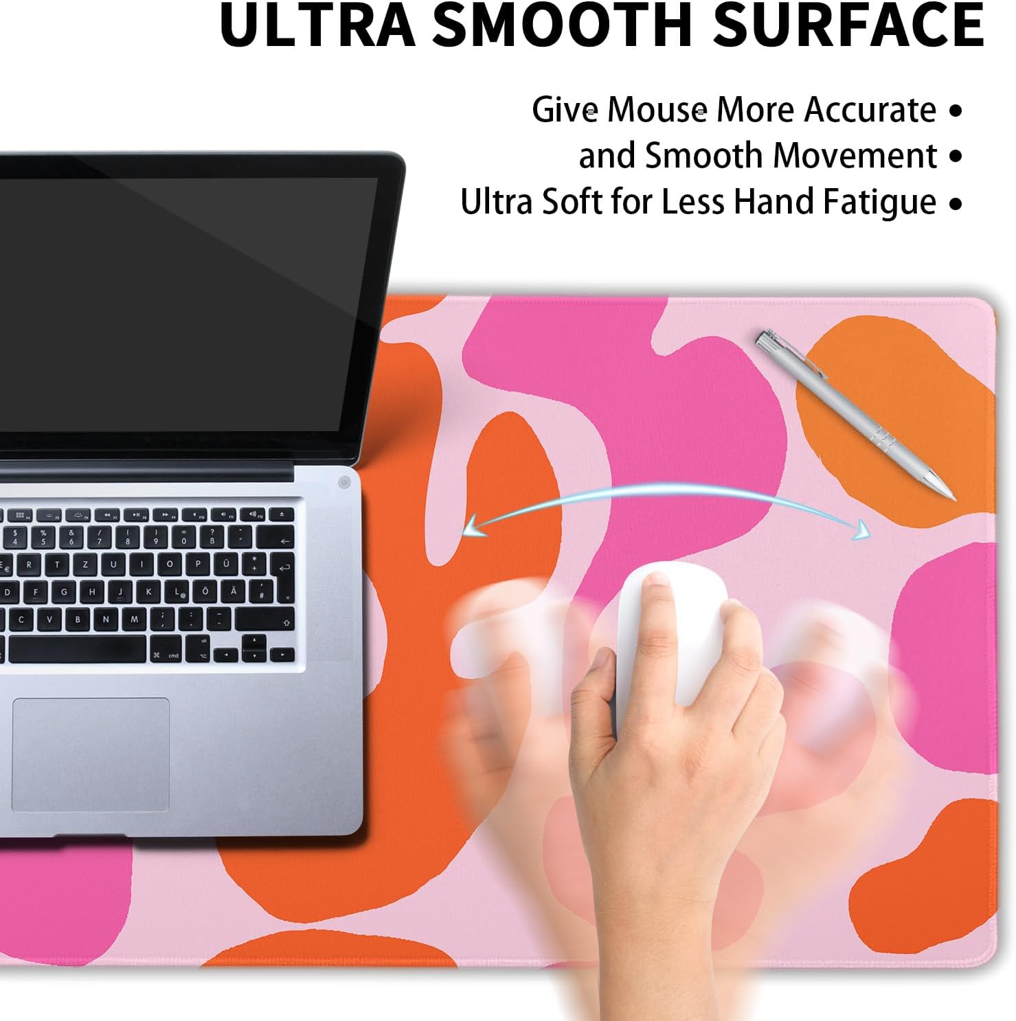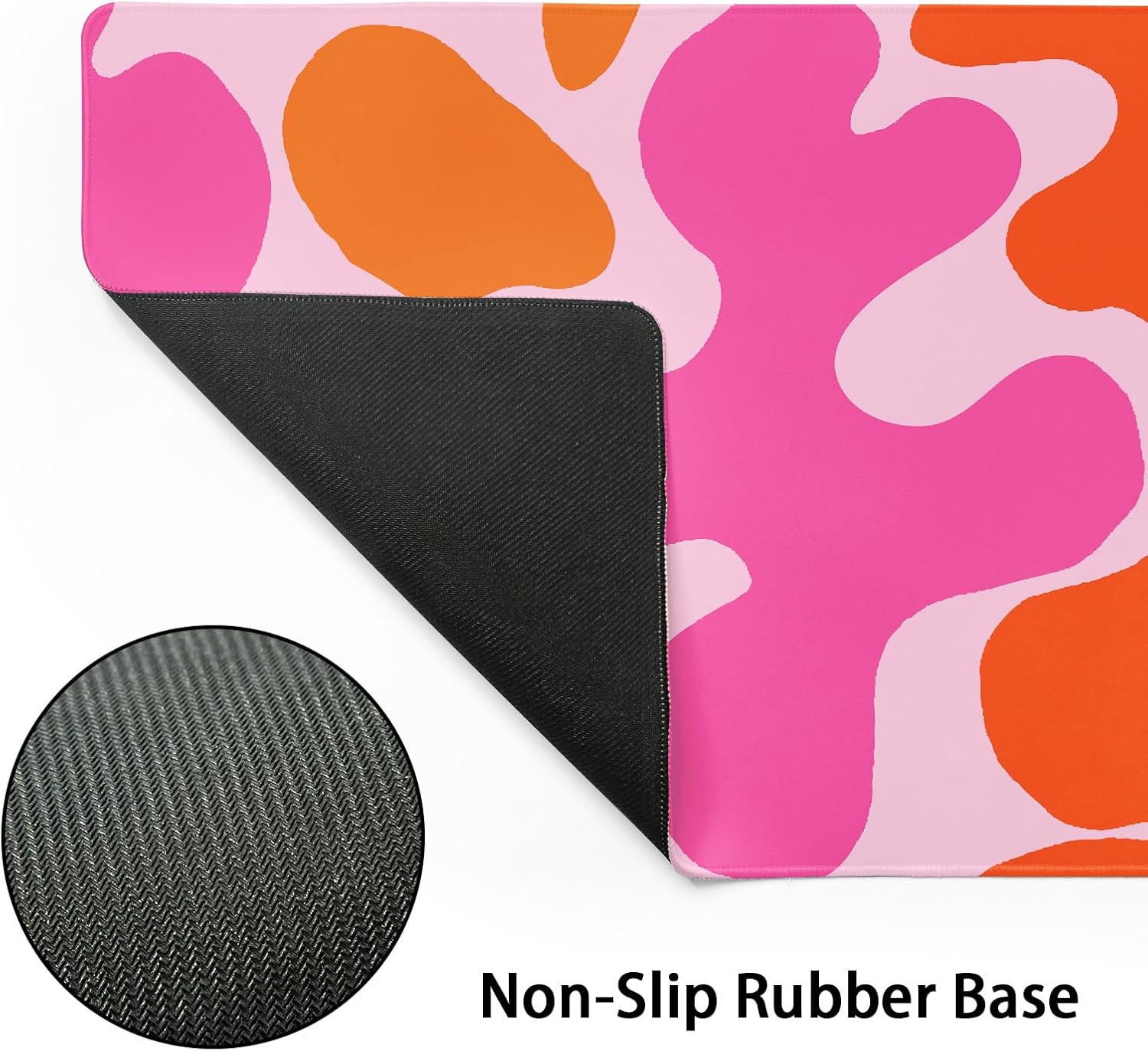 Pink Orange Cute Gaming Mouse Pad XXL Kawani Preppy Abstract Modern Extended Large Desk Mat Mousepad Non-Slip Rubber Base Stitched Edge Long Mousepad for Desktop Office PC, 35.4 x 15.7 inch