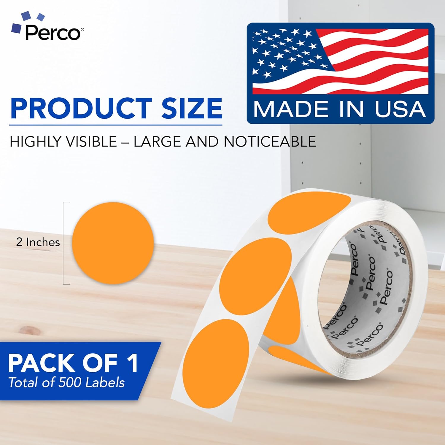 Perco Fluorescent Orange 2-Inch Round Circle Dot Sticker Labels with Easy Peel Perforation - 500 Labels per Roll - Strong Adhesion, Vibrant Colors for Organizing, Crafting & More - Made in USA