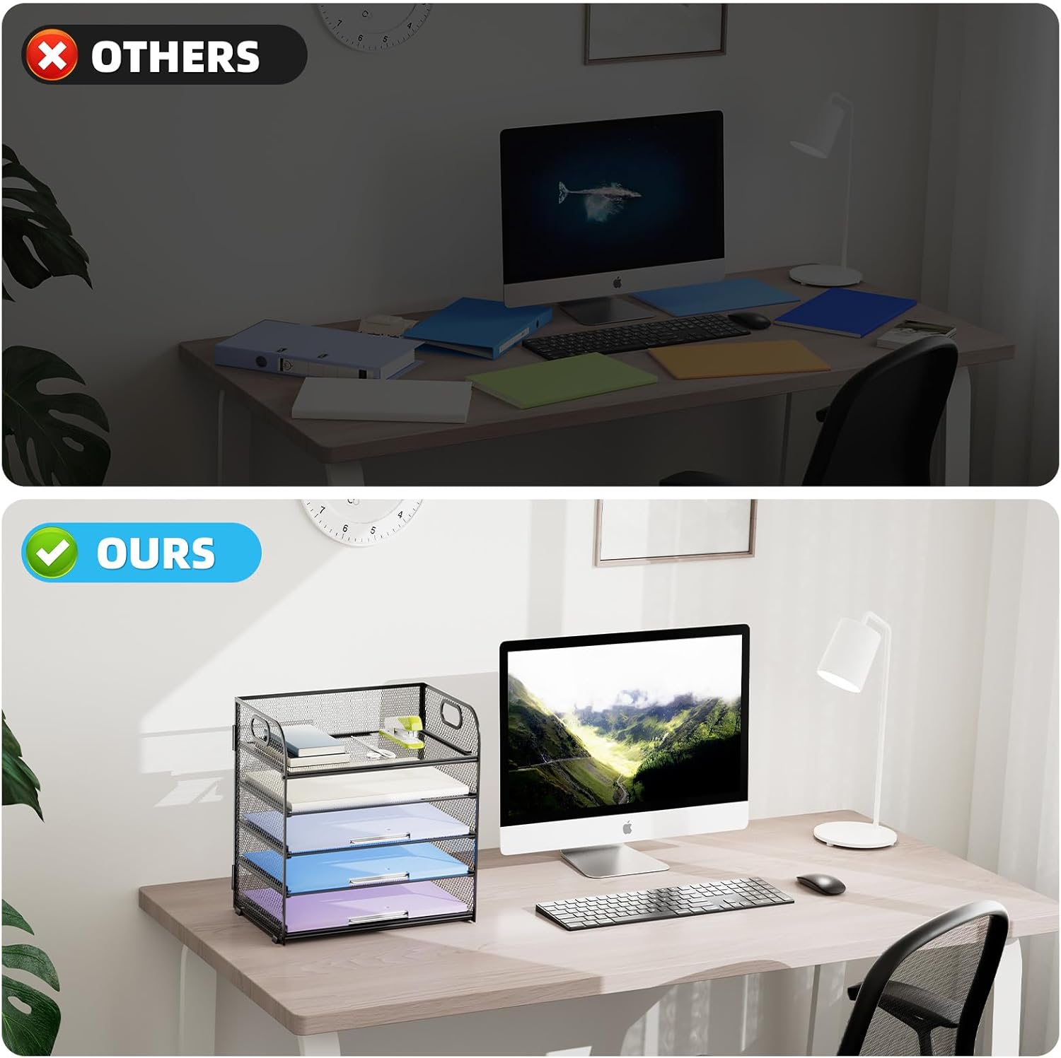 - 【PREMIUM QUALITY】The mesh desktop file organizer is made of lightweight durable metal mesh and reinforced with a solid steel frame that makes it have long-lasting strength and reliable performance.