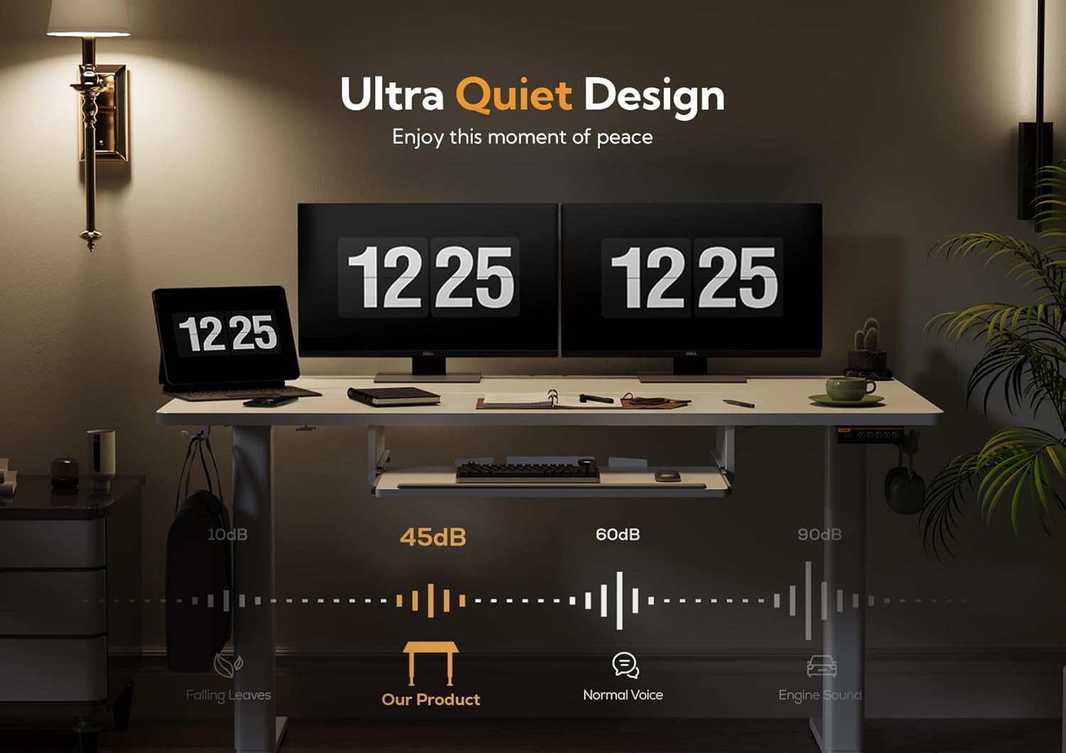 - Ultra-Quiet and Powerful Motor: Claiks custom-designed motors provide robust power for the height-adjustable standing desks. With noise levels as low as 45 decibels, you can enjoy smooth and quiet adjustments, enhancing your workspace without any disruptions