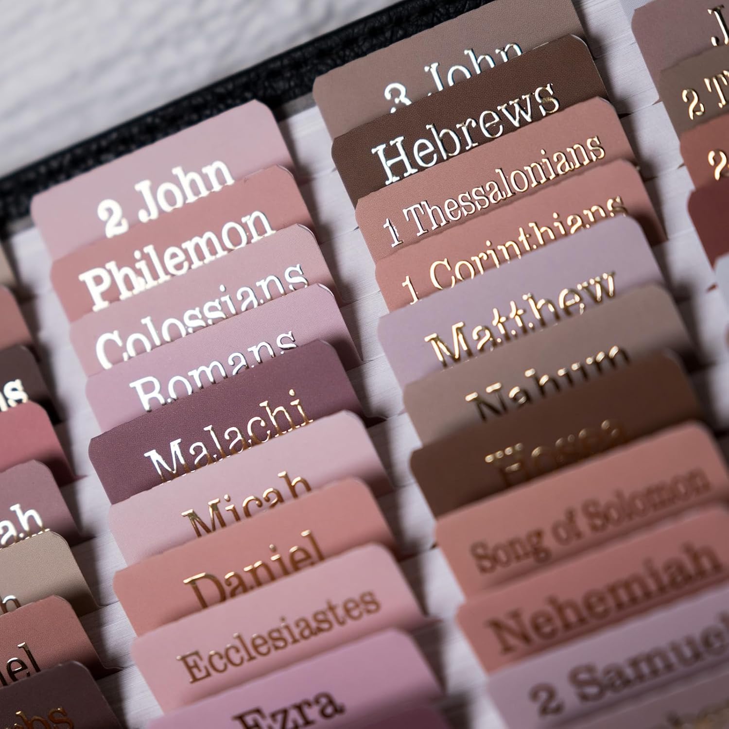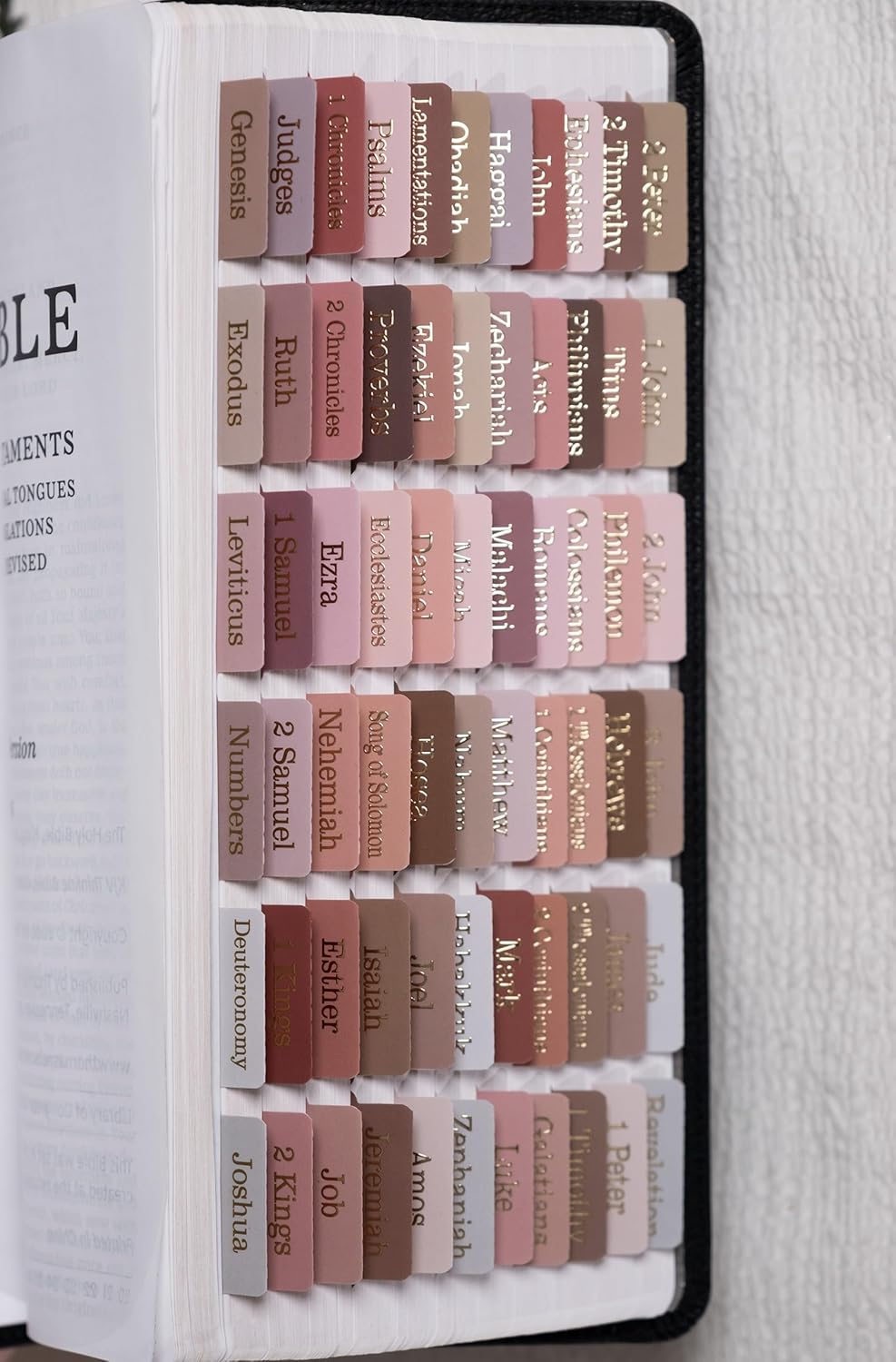 UPAFEXXI-Laminated Bible Tabs for Women and Men (Gold Foil Embossed Lettering) Reposition Large Print tabs, Easy to Read and Apply, 80 Bible Chapters Labels for Easy Navigation(Earth Tone Theme)