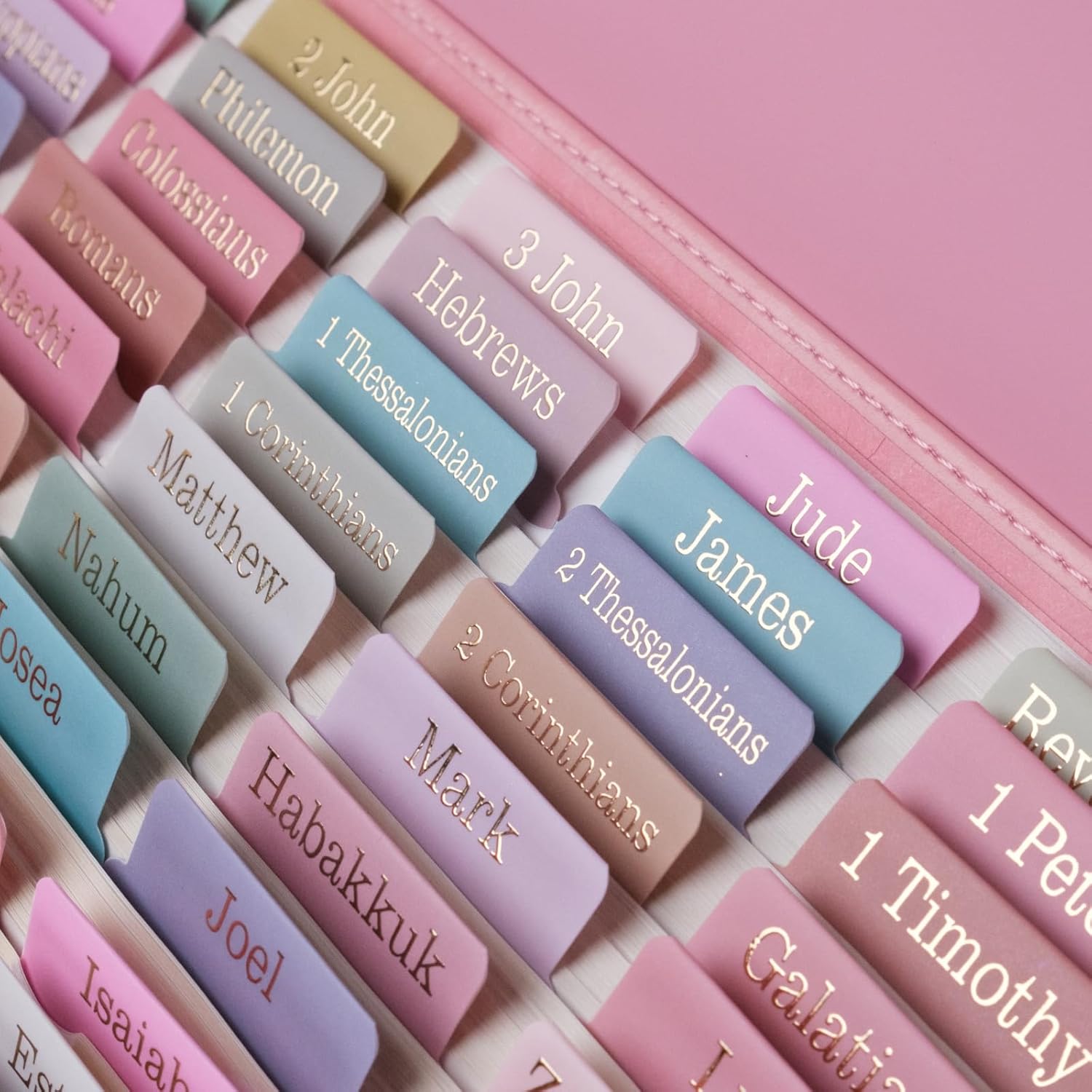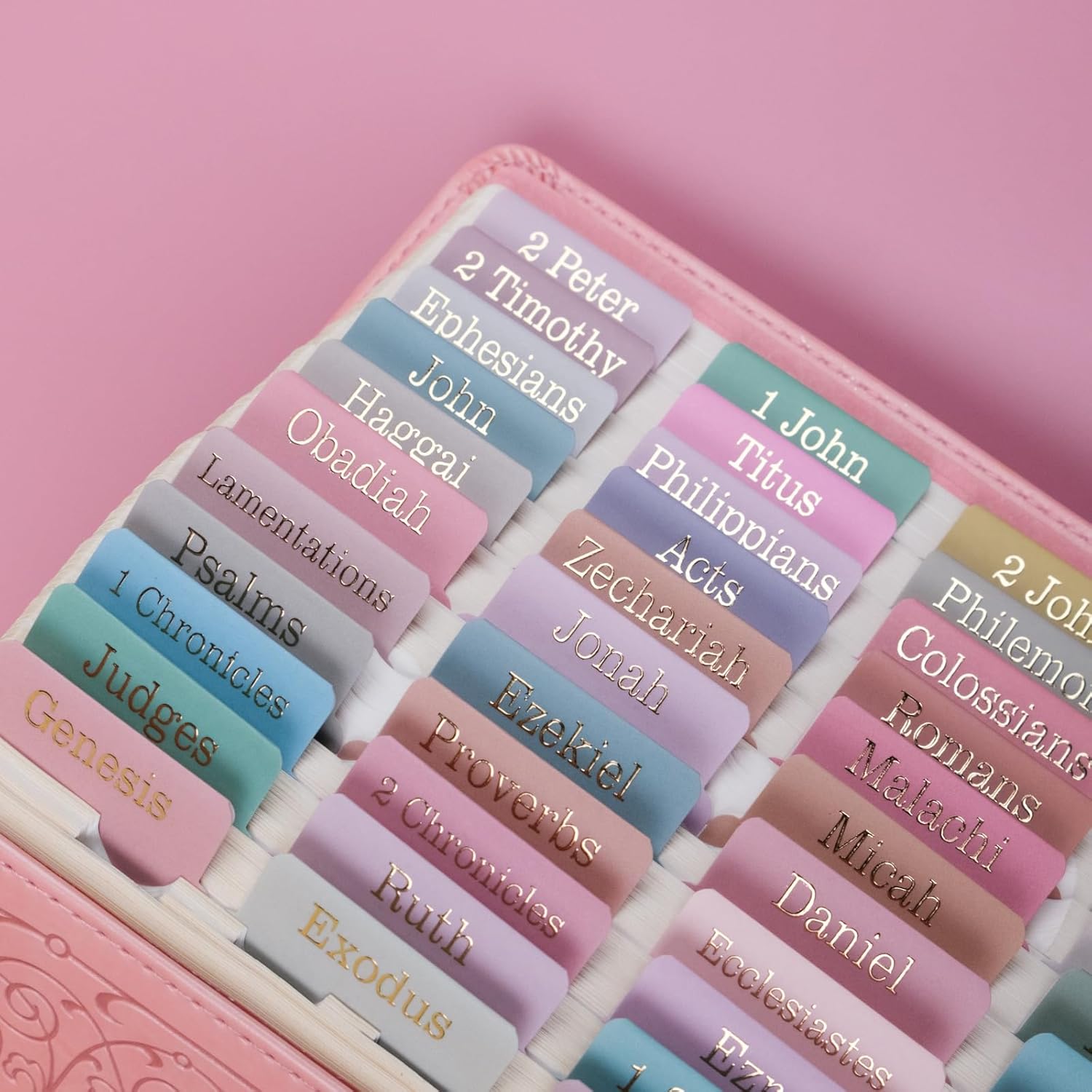 - Unique: Gold Foil Embossed Lettering.This is the ideal christian gi.ft. These unique Bible index tabs make a great gi.ft for your girlfriend, mum, kids, or anyone who loves beautiful things in life.