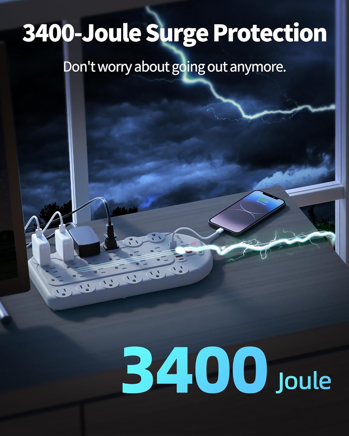 - 【Safeguard Your Devices】-This large power strip has a 3400-Joule energy rating providing a reliable surge protector to protect any meeting room, office, personal workstation, or urround sound system.