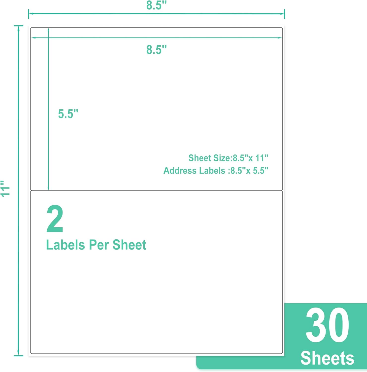 L LIKED 30 Sheets 5.5 x 8.5 Inches Shipping Address Labels for Laser/Ink Jet Printer - 30 Sheets