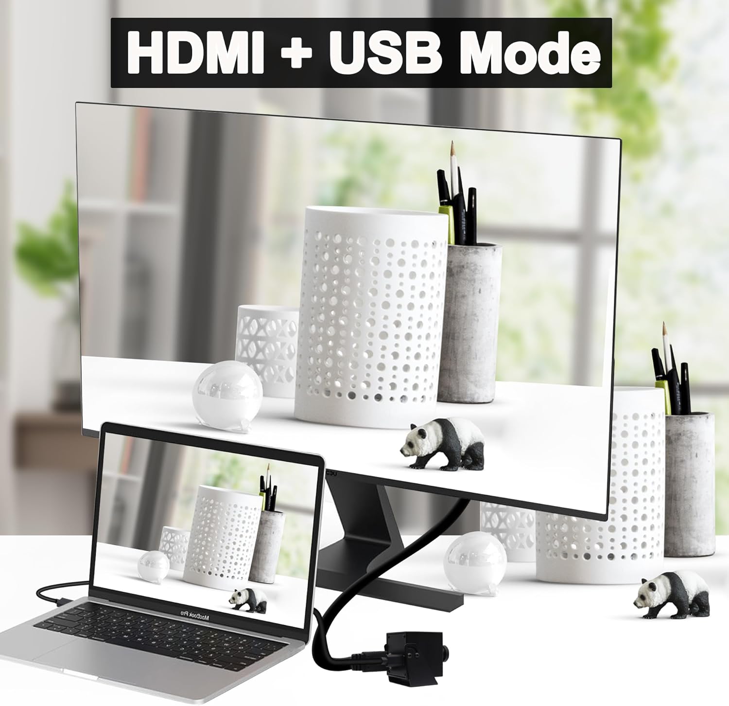 - Solid aluminum body: With 1 piece 1.2 meter USB C to A cable, 1 piece 1.5 meter HDMI cable. 1/4 inch screw thread support for tripod mount and metal stand support for surface mount.