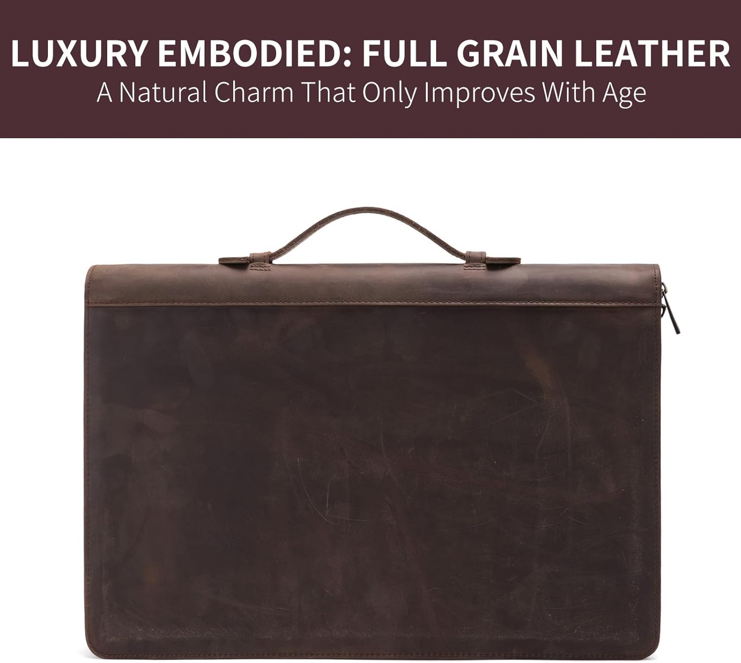 - Crazy Horse Leather: The characteristic of Crazy Horse leather is that it is easy to leave scratches, which makes it unique. The leather's surface has a two-tone effect, where the color lightens when it is scratched or rubbed, creating a distressed and weathered appearance over time. Our handmade full-grain leather portfolio exudes sophistication, with its rich and natural patina, making it a classic and luxurious accessory for professionals.