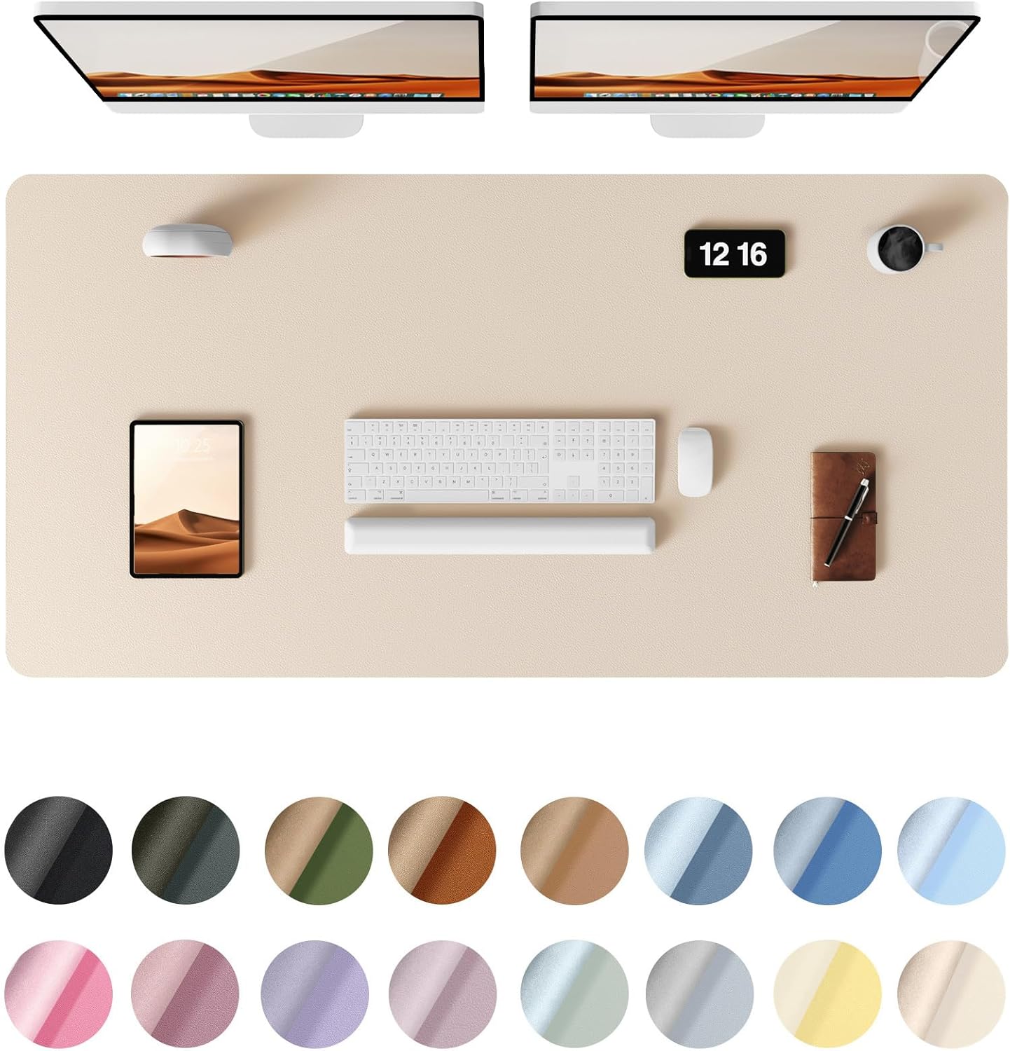 YSAGi Leather Desk Protector, Office Mat, Large Mouse Mat, Non-Slip PU Leather Blotter, Laptop Pad, Waterproof Writing Pad for Office and Home (Eggshell, 47.2" x 23.6")