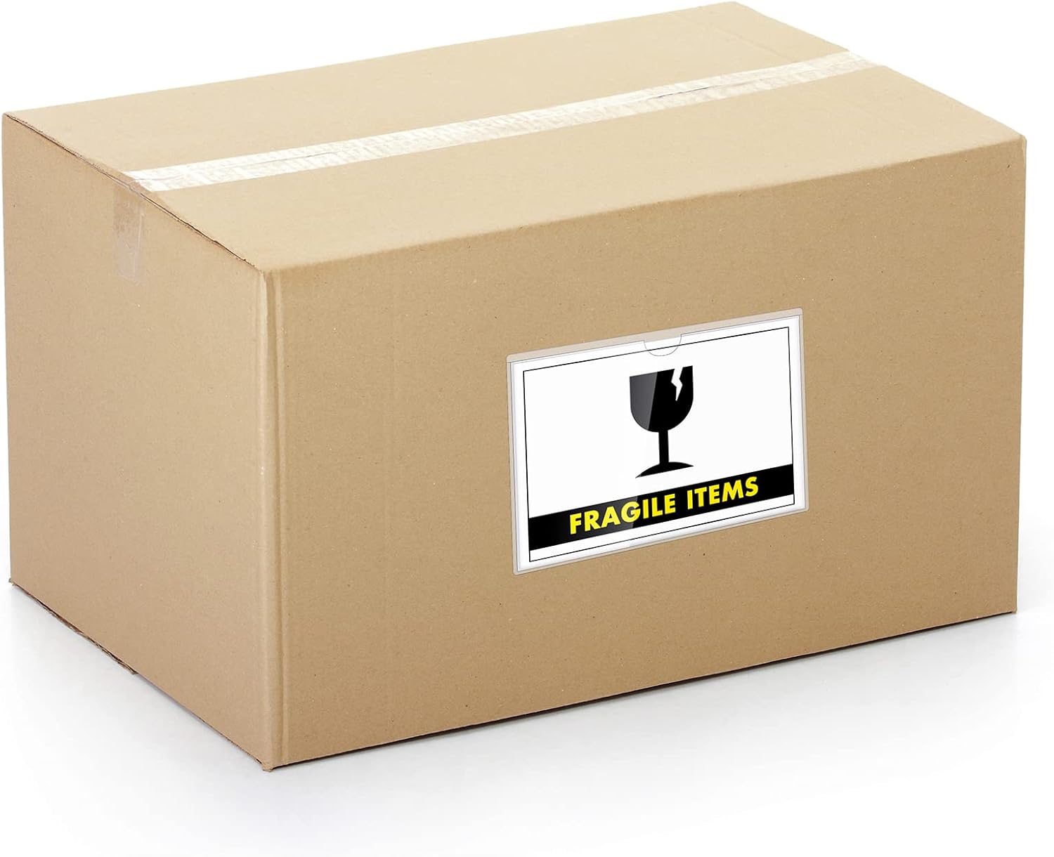 Outus 100 Pcs Clear Self Adhesive Pockets - Bin Labels for Storage Bins, Pocket Label Sleeves, Plastic Index Card Holder with Top Open for Organizing Bins Box Drawer(5 x 7 Inch)