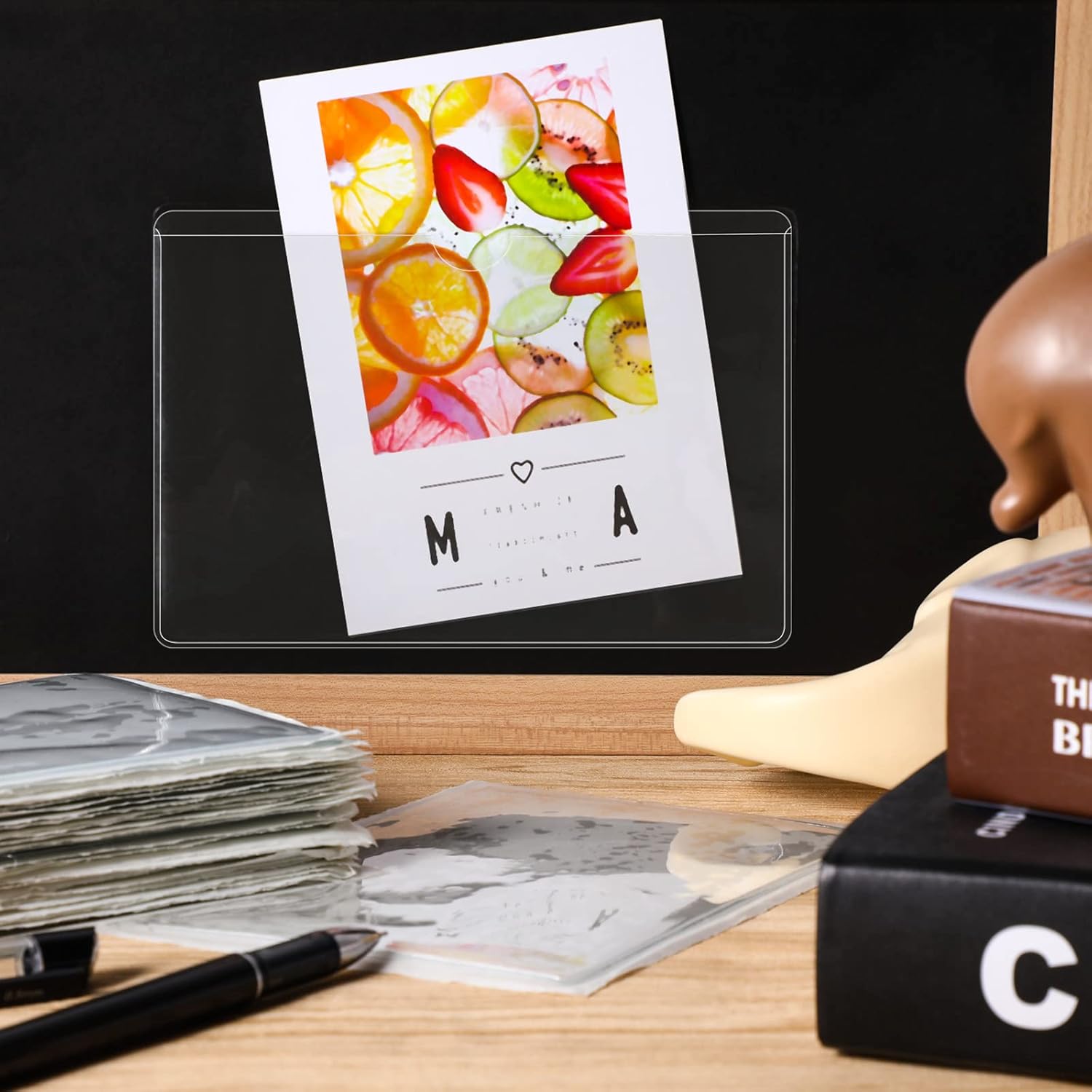 - Applicable Cards: the outer size of clear adhesive pockets is 13.5 x 18.6 cm/ 5.32 x 7.33 inches, fits cards up to 5 x 7 inches; You will recieve 100 self-adhesive card holder for labels, waterproof, dustproof, and fingerprint-resistant