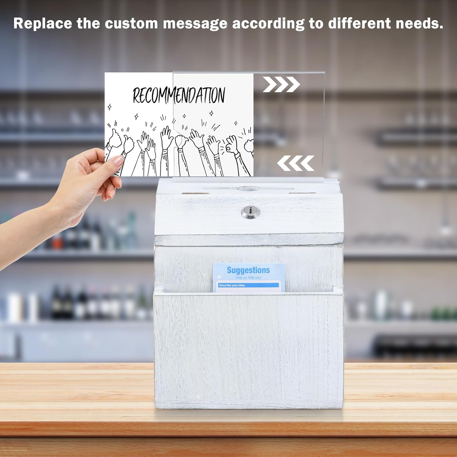 - STORAGE FEATURES: In addition to its main functionality, this suggestion box also offers a built-in storage compartment. This compartment can be used to store blank forms, notepads, ballots, or suggestion cards, keeping everything organized and easily accessible.