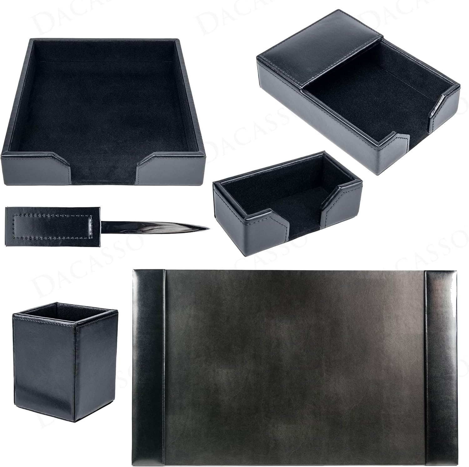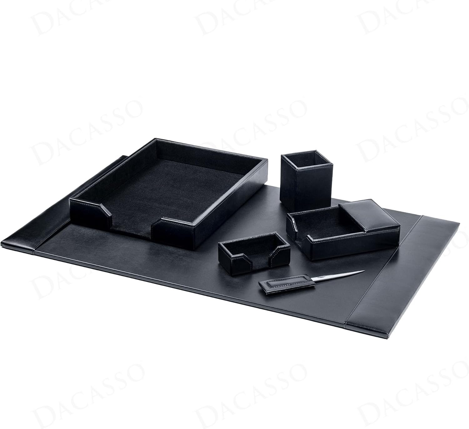 Dacasso 6 Piece Black Bonded Leather Luxury Desk Accessory Set - Desk Pad & Organization Essentials