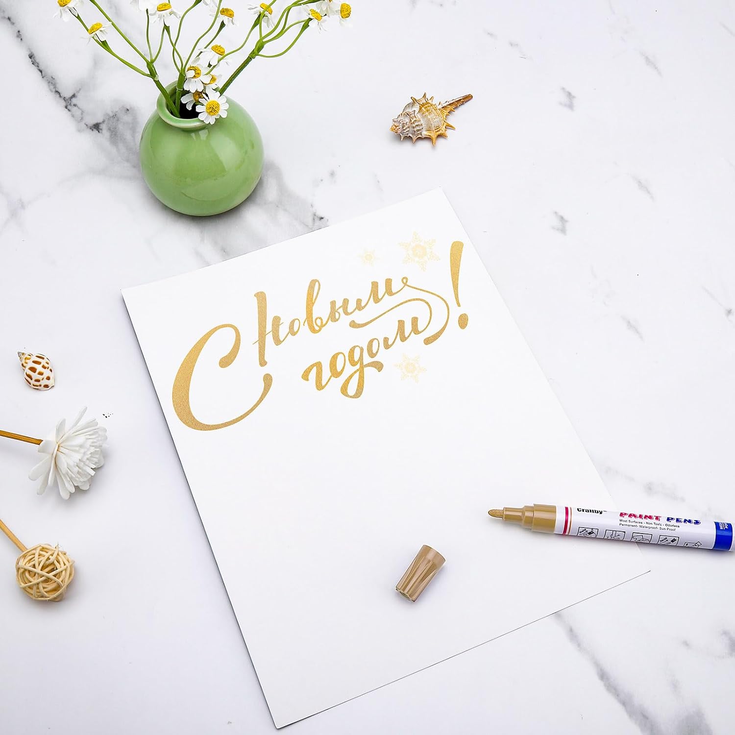 Gold Paint Markers, 8 Pack Oil-Based Waterproof Quick Dry Permanent Paint Pen Set for Rocks Painting, Wood, Fabric, Plastic, Canvas, Glass, Mugs, Metal, Tire, Stone, DIY Craft, Copper