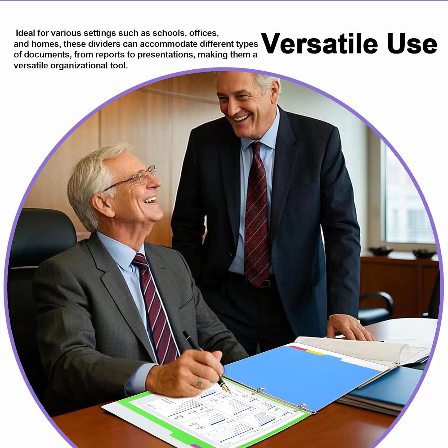 - Vibrant Color Options: Each set includes colored dividers in five vibrant colors: Purple, Blue, Green, Yellow, and Red, making it easy to categorize your documents with subject dividers for 3 ring binders.