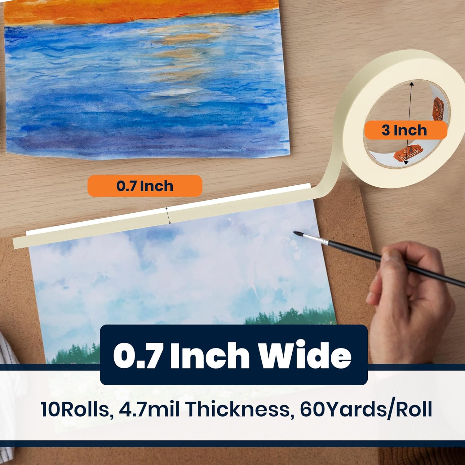 - ONE PACK, 6 ROLLS: Our general purpose beige white paint tape set comes with 10 rolls. The thickness of masking tape is 4.7mil, each roll measures 0.7 inches in width and 60 yards in length. Long enough for your different needs. Great for crafts, arts, DIY projects, organizing, decorating etc.