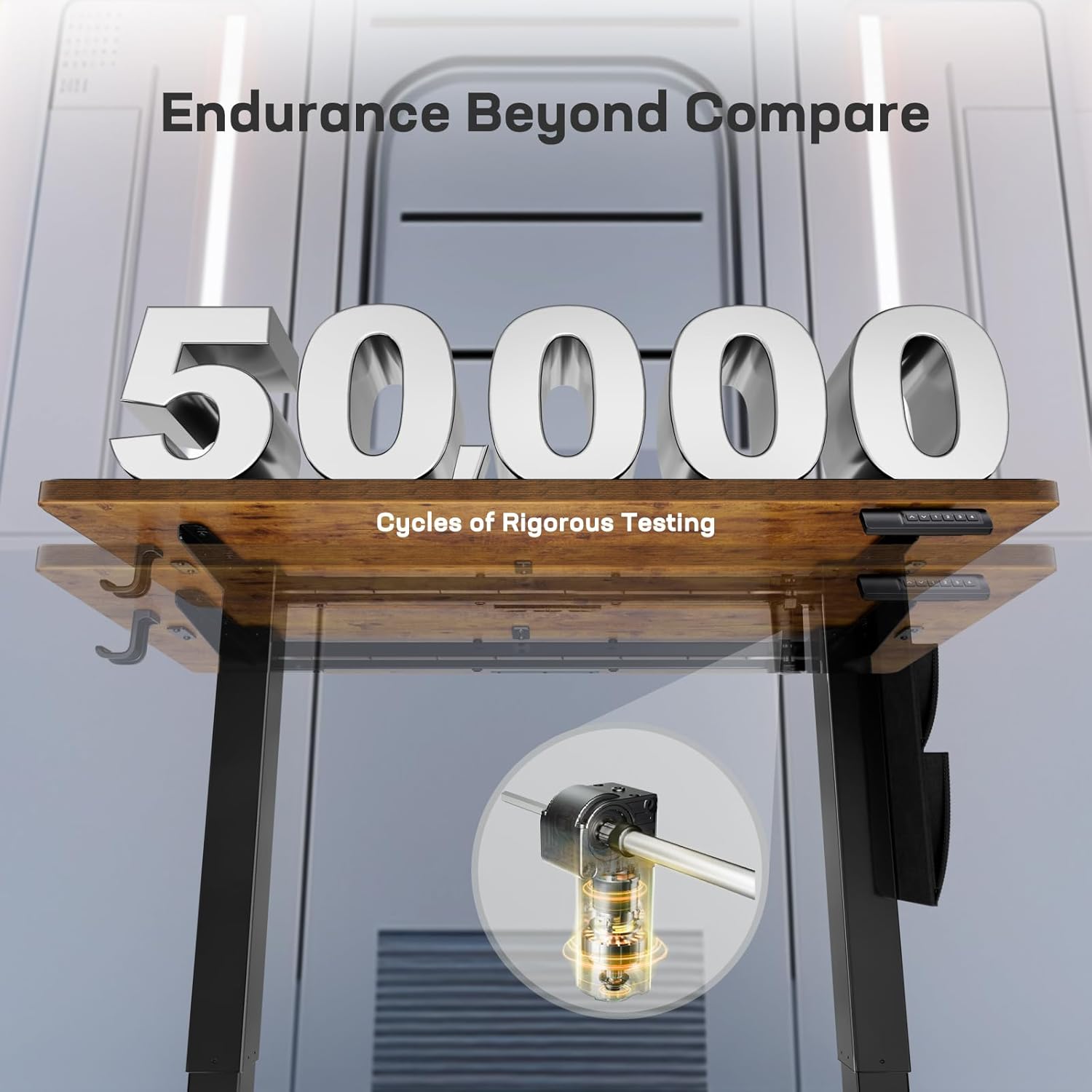 - Energy-Efficient Motor: Equipped with a quiet motor operating below 50 dB, this home office desk provides smooth adjustments at a rate of 2 inches per second, even under heavy loads. The motor’s energy-efficient design reduces power consumption, supporting an eco-friendly workspace. Paired with a sturdy steel frame, the desk remains stable during height adjustments, creating a reliable foundation for a dynamic work environment.