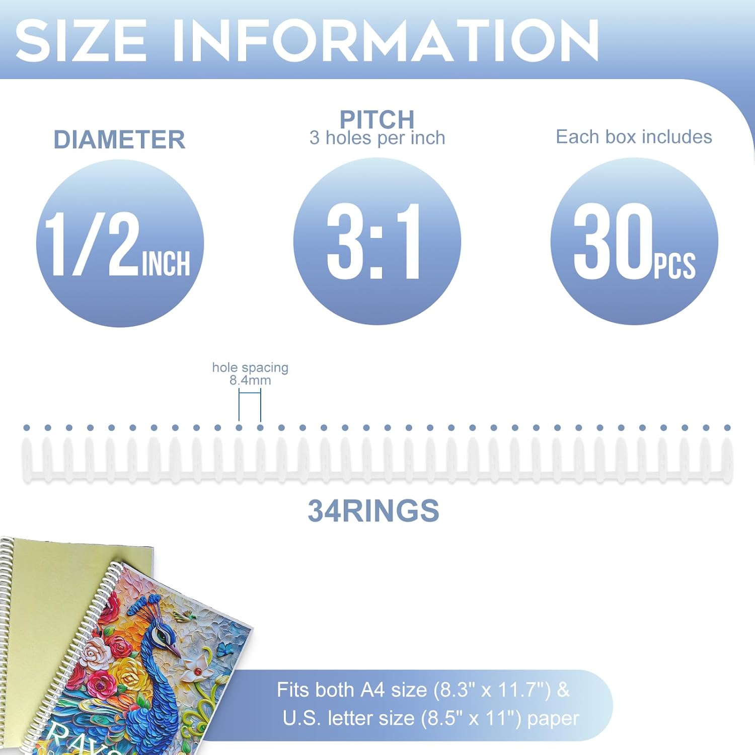 - Versatile Compatibility: Fits both A4 size (8.3" x 11.7") and U.S. letter size (8.5" x 11") paper. For U.S. letter size, simply trim off two rings with scissors.