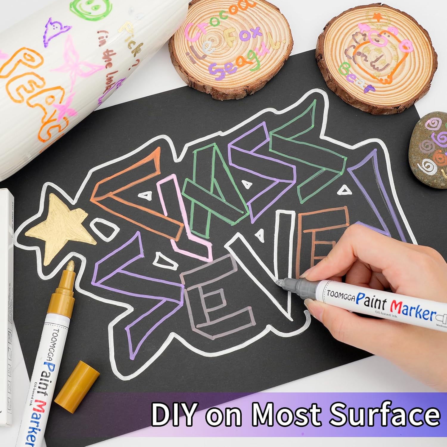 - Quick-Drying: Featuring quick-drying oil-based ink that resists water, fading and abrasion. The oil based paint pens is glossy. For Instant gratification: Get your projects completed in record time with our quick-drying markers, Drying time 45 - 60 seconds