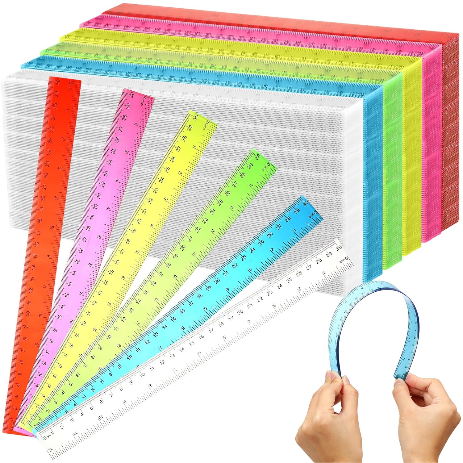 Fumete 600 Pack 12 Inch Plastic Rulers Bulk for Classroom Operation Christmas Supplies Flexible Transparent Assorted Color Ruler with Centimeters and Inches for Office Teacher Student