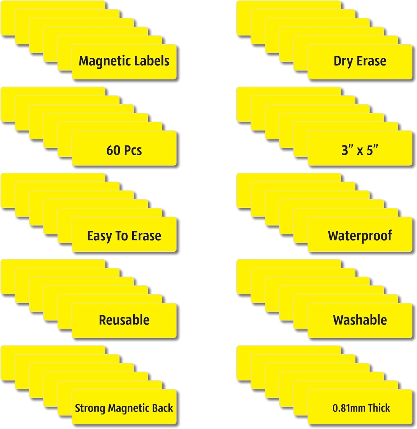 Magnetic Dry Erase Magnets Labels 3x1 inches, Reusable Name Tags, Organizing Schedules in Office/Classroom. Work on Fridge/White Board (Yellow 60Pcs)
